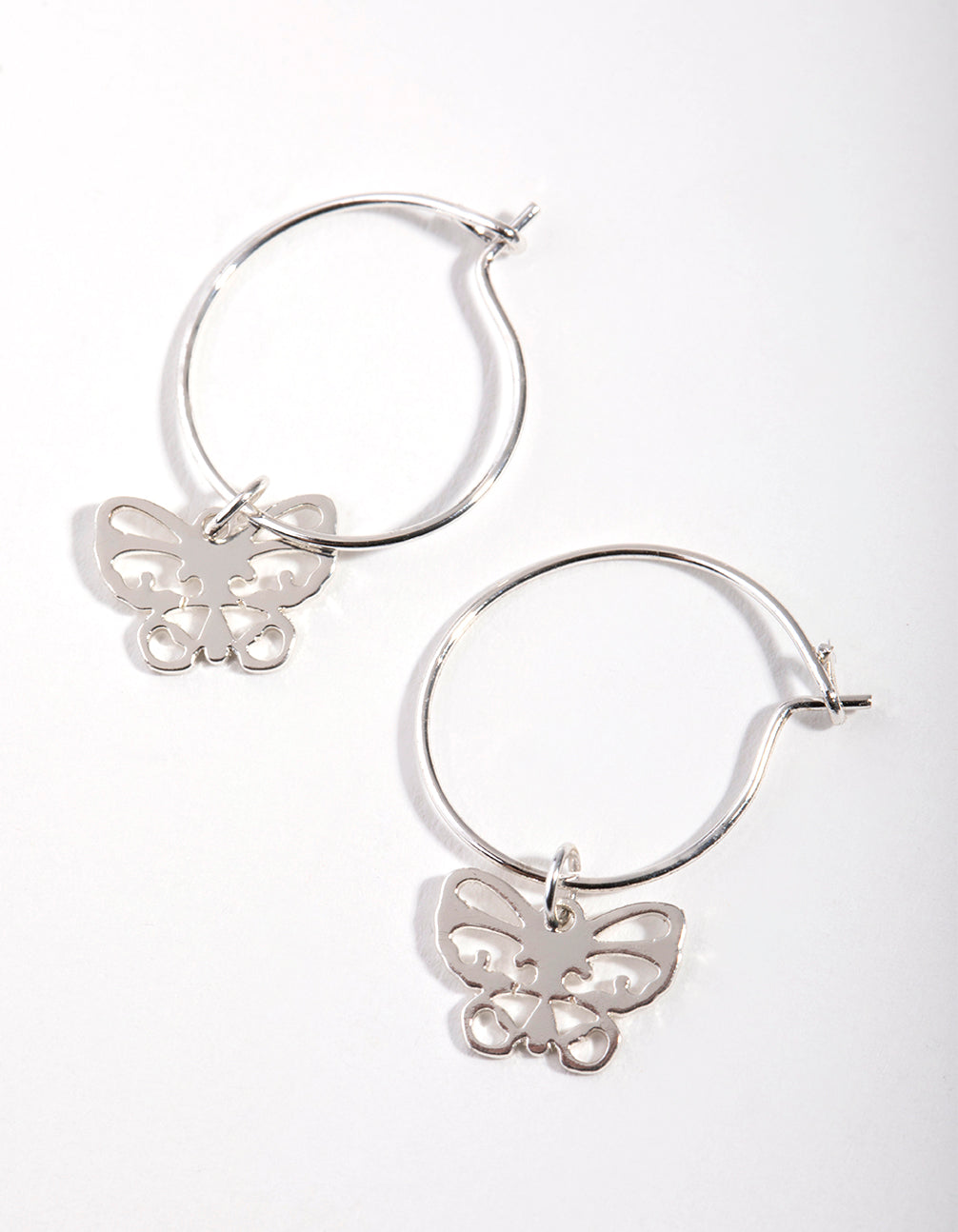 Elevate your look with a chic pair of fashion earrings! These earrings boast cut out butterfly charms on a fine wire setting. Pair with your favourite silver-toned jewellery for maximum impact.