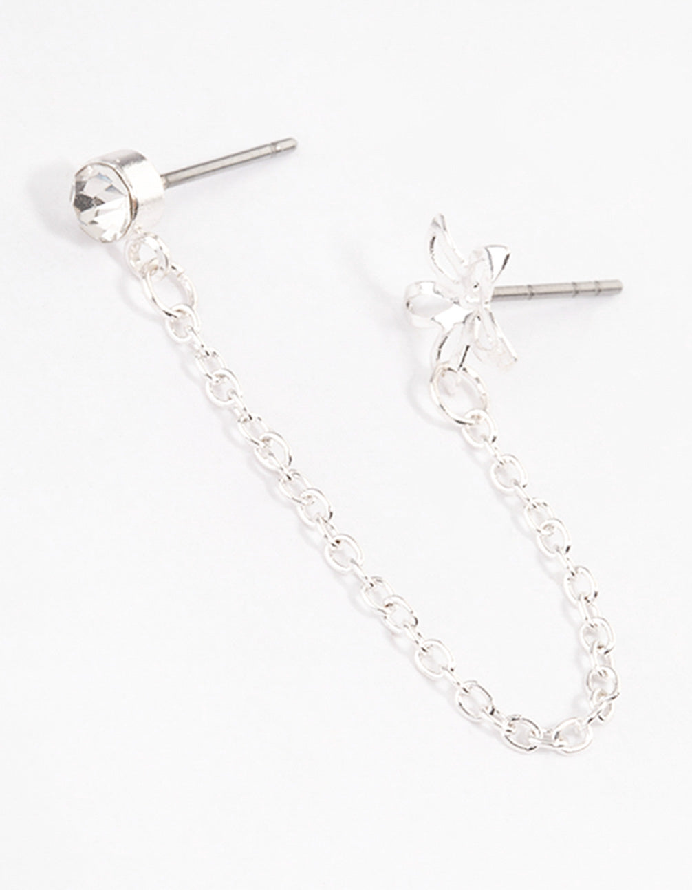- This set of stud earrings feature a silver setting with a diamante encrusted, flower design for a feminine finish.