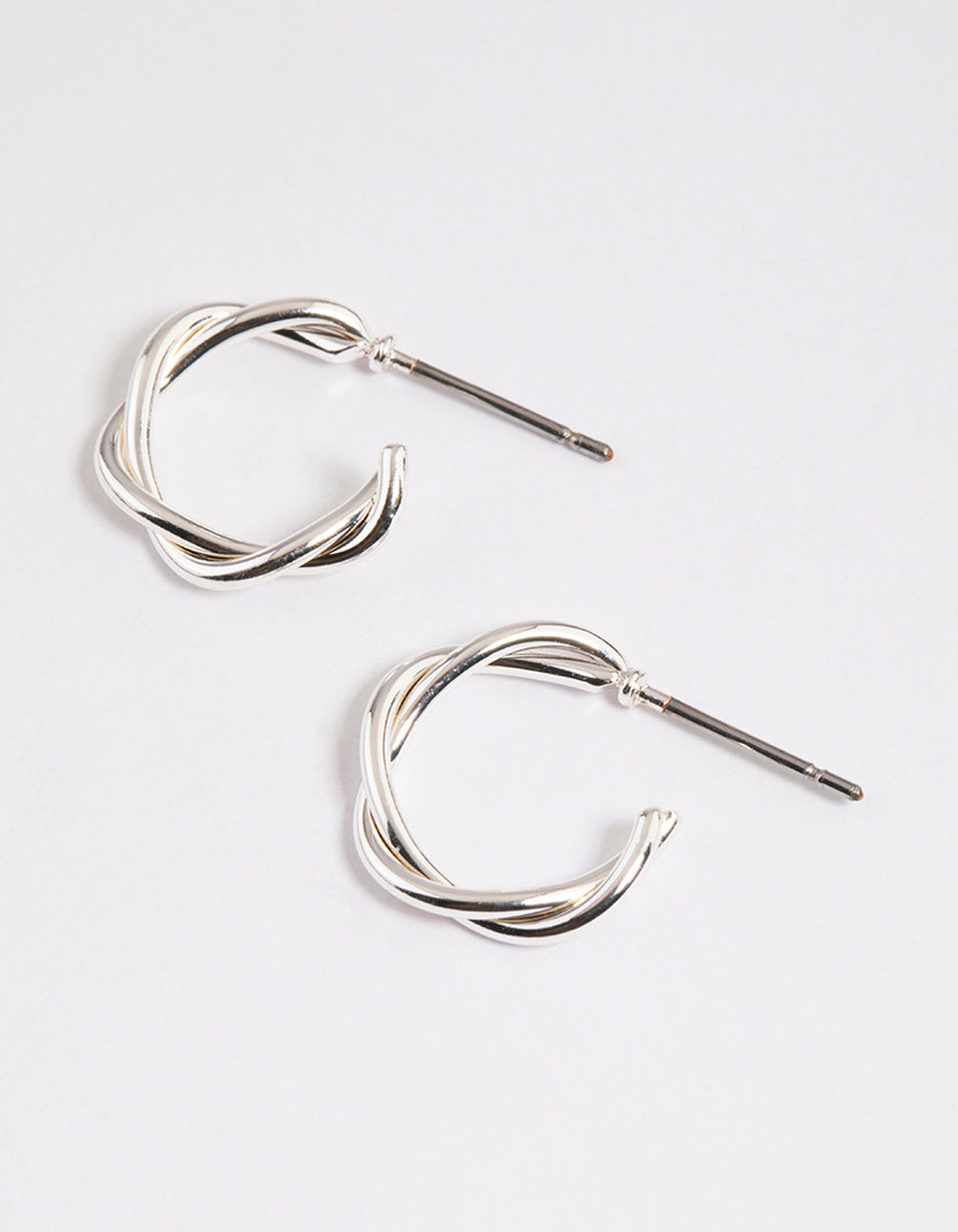 - These simple huggie hoop earrings feature a soft, twisted interlaced design for an intricate finish.