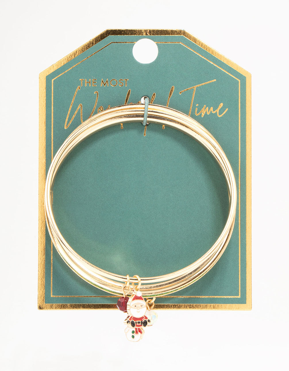 Bring some festive holiday spirit to your wrist with this beautiful gold bangle. The gold toned bangle features a red bead and an enamel Santa charm, perfect for celebrating the season in style.