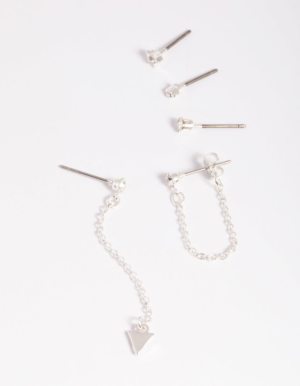 Silver Fine Diamante Mixed Stud Earring 5-Pack