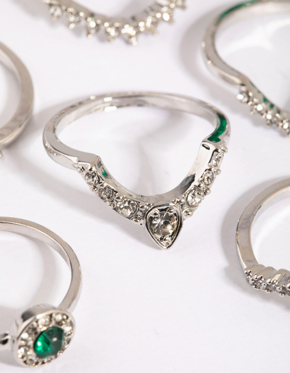 Silver Green Diamante Ring Pack Silver Green Diamante Ring Pack Silver Green Diamante Ring Pack