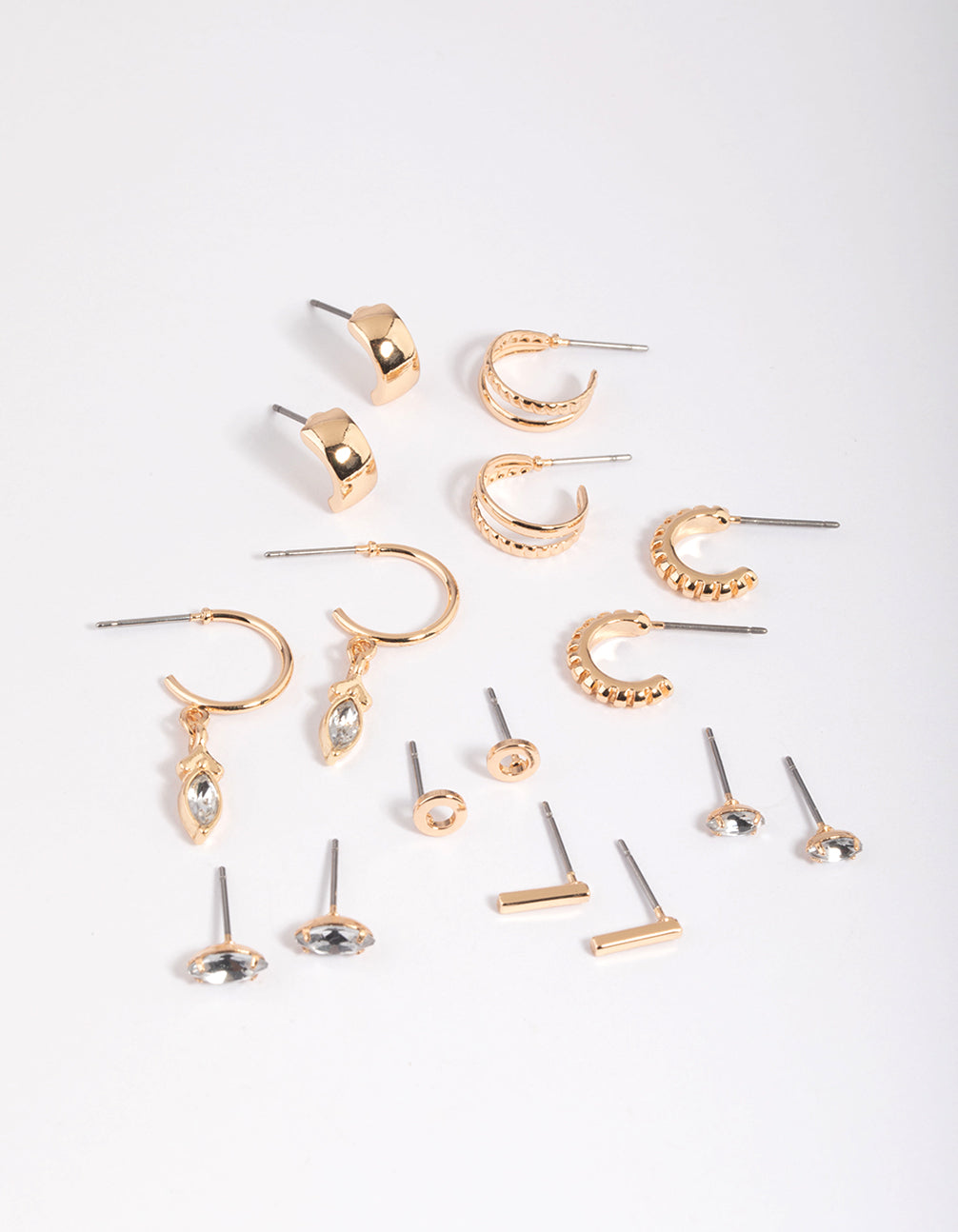 Gold Mixed Stone Stud & Hoop Earring 8-Pack Gold Mixed Stone Stud & Hoop Earring 8-Pack Gold Mixed Stone Stud & Hoop Earring 8-Pack
