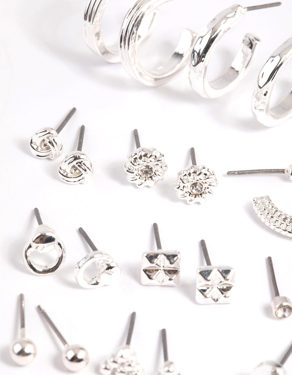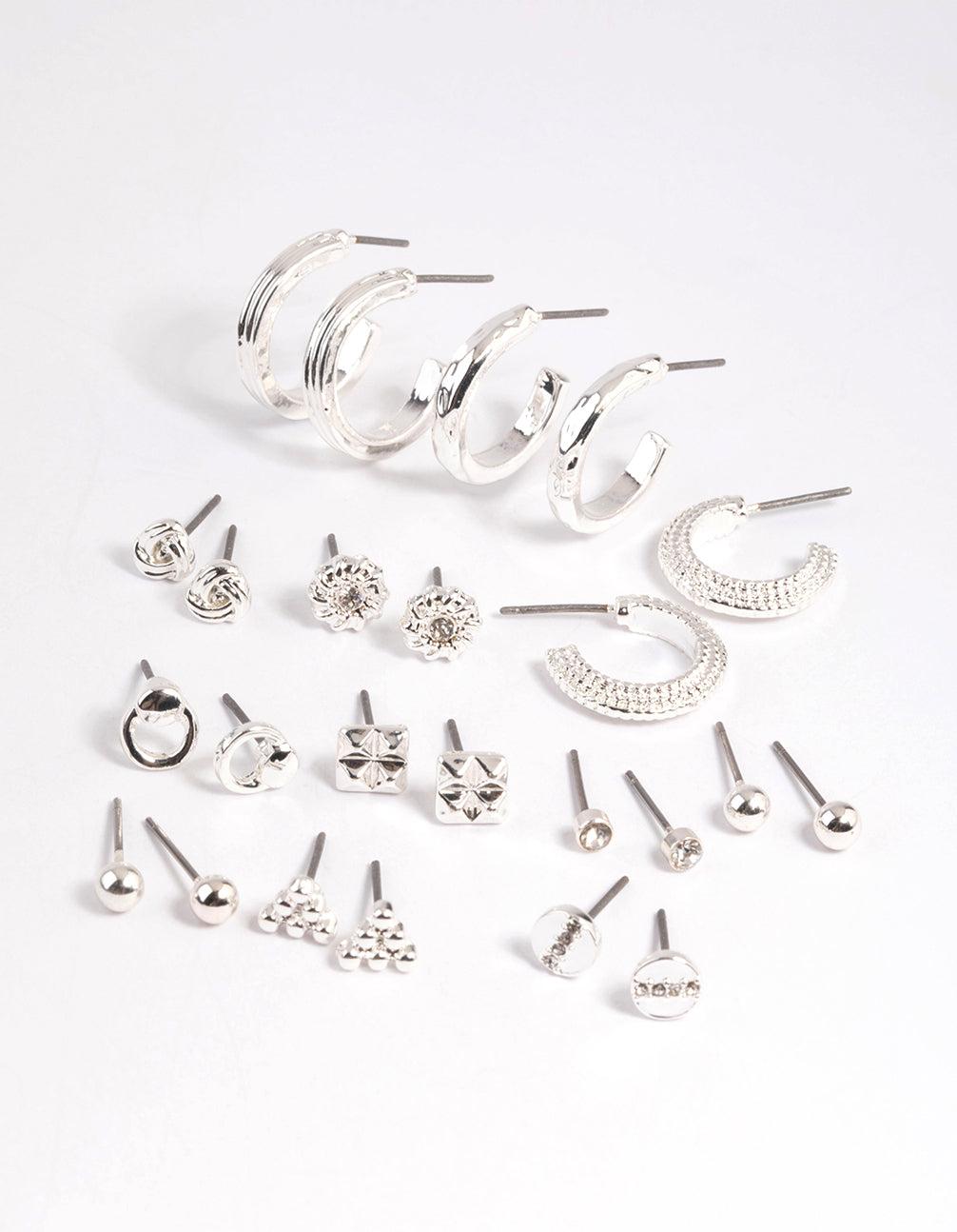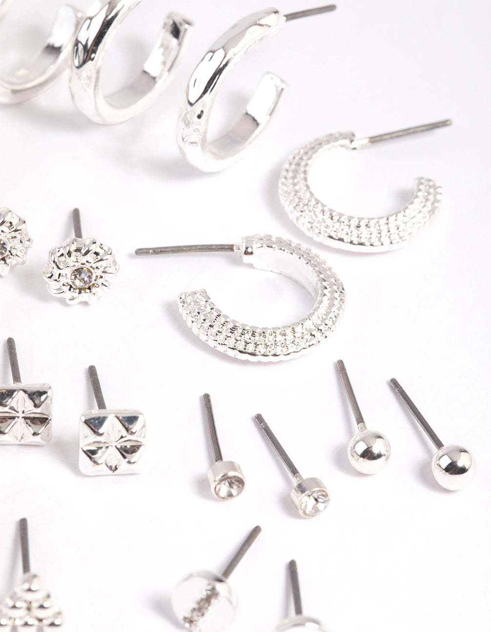 Silver Textured Stud & Hoop Earring 12-Pack