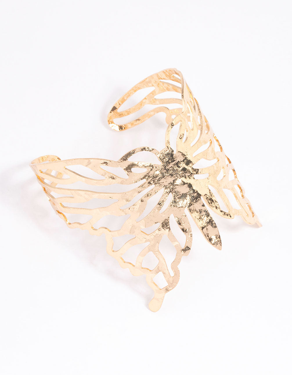 - This simple arm cuff features a gorgeous gold-toned setting and butterfly design — perfect for adding interest and detail to your look.