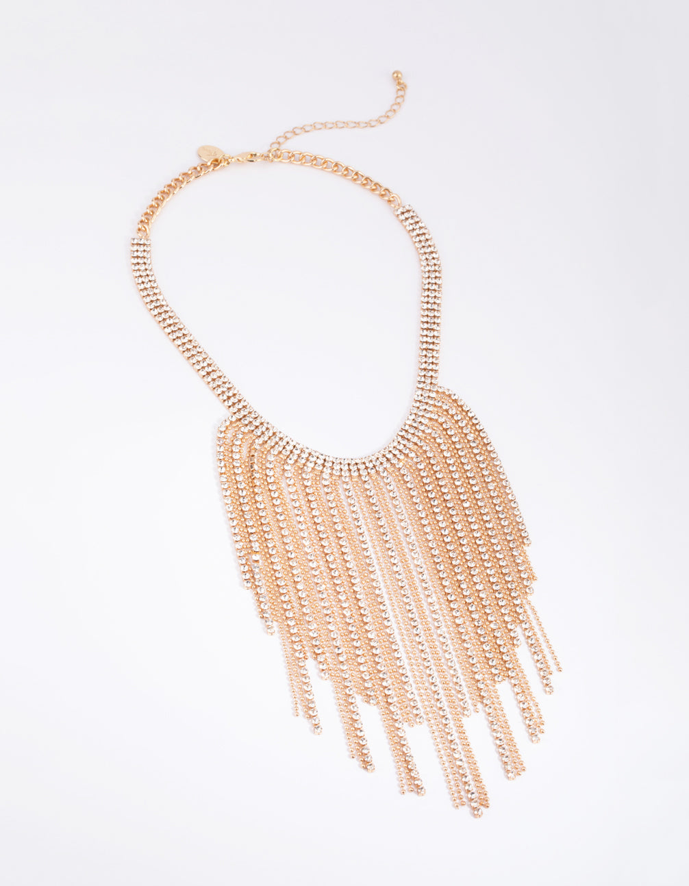 Gold-toned accessories are chic and versatile. These on-trend necklace features a modern design with diamante embellishments. Style it with gold-toned earrings for a luxe look, or pair it with jeans for an elevated casual look.