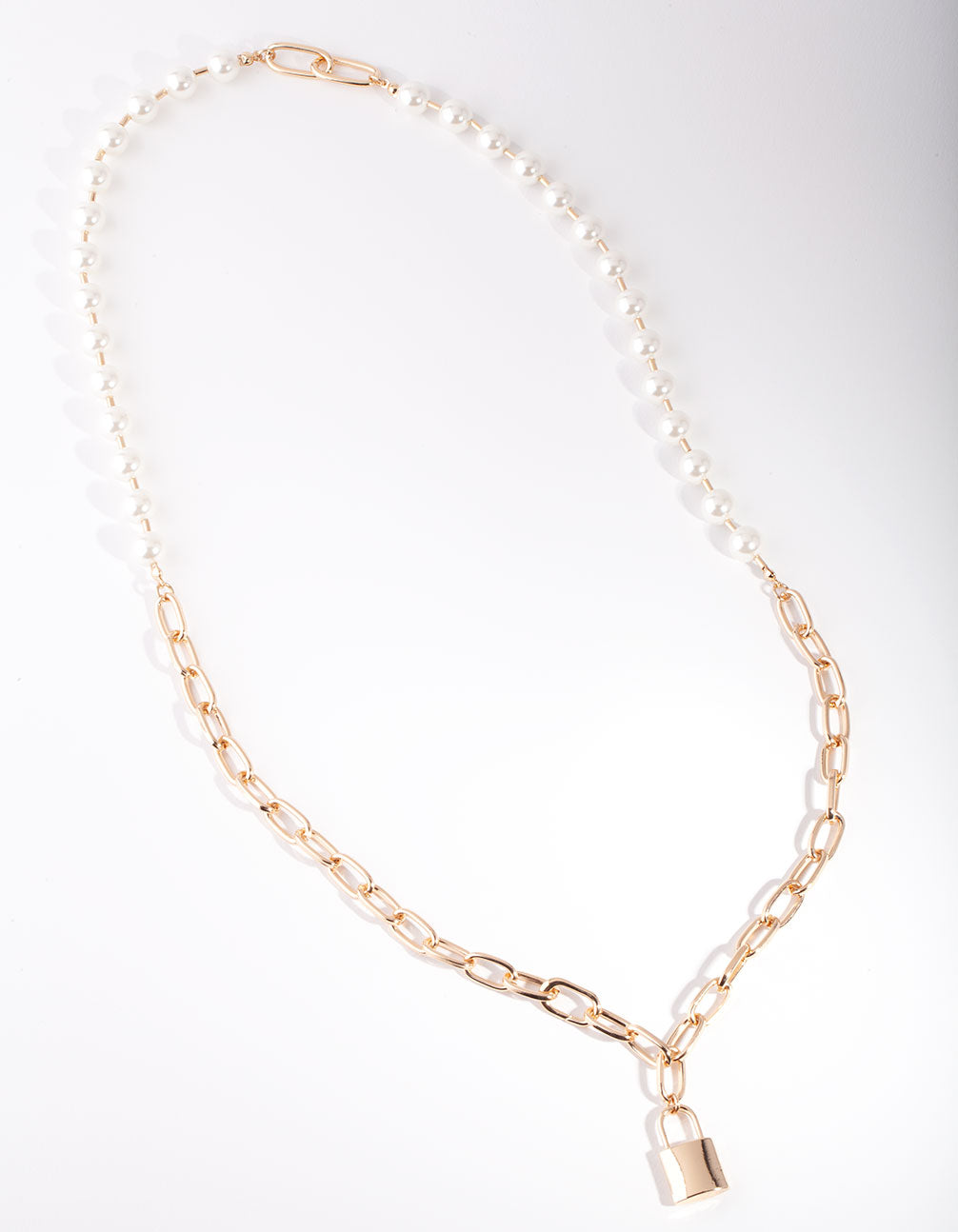 Gold Link & Pearl Padlock Necklace