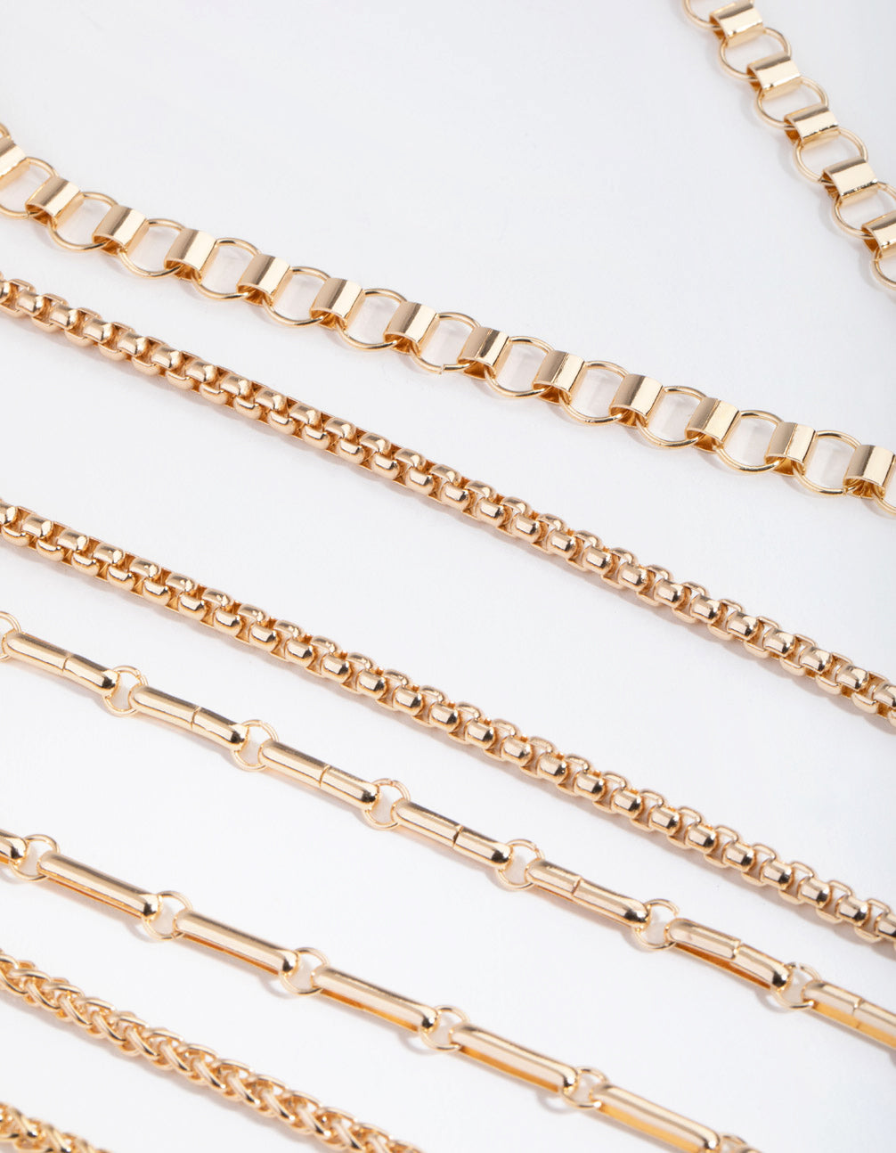Lovisa loves a layered look! This set comes with five necklaces, all different lengths and with different chain designs. This makes it perfect for stacking, or else mix and match them! Pair them with other gold-toned pieces for a luxury look.