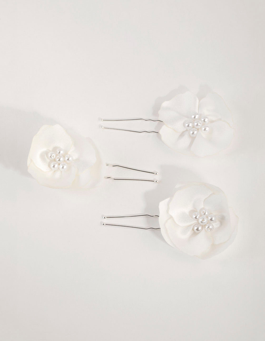 This set includes three floral pins with large fabric petals and faux pearls at the centre. Pin these into a bun or hairstyle to create a pretty occasion look.