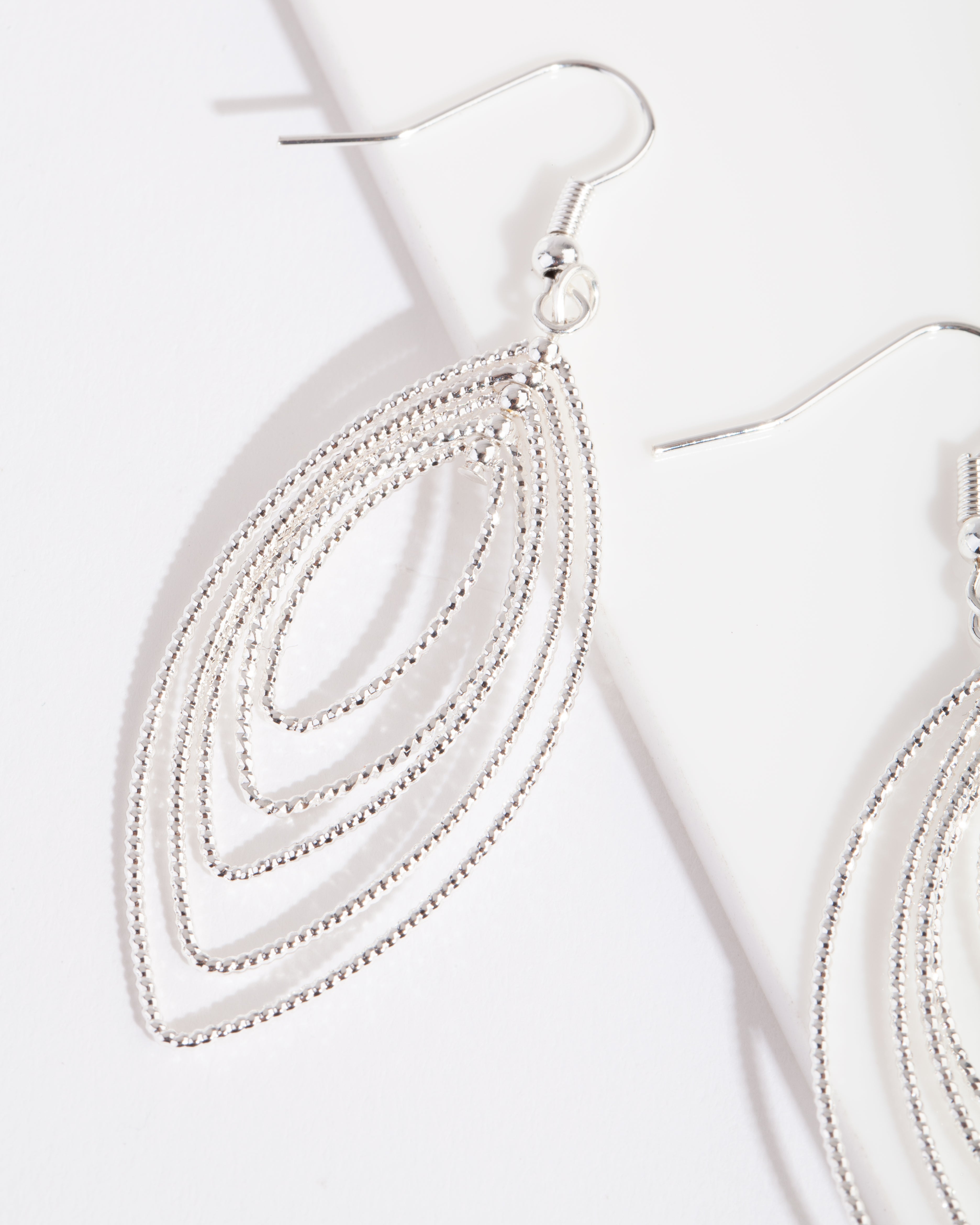 These delicate earrings boast a looped drop design in a stunning textured silver shade.