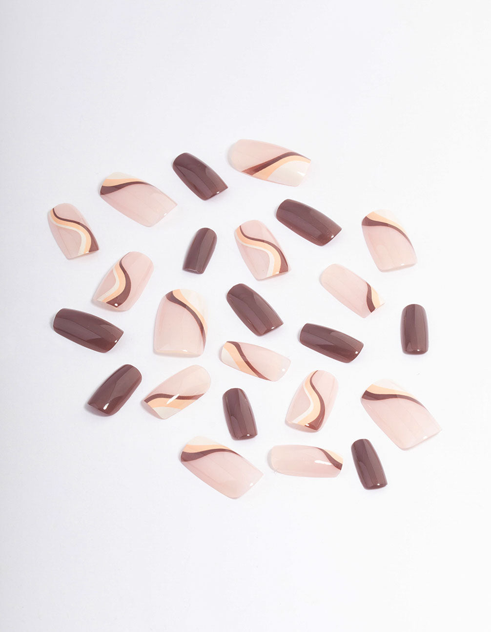 Style these neutral swirl design press on nails with an adorning ring stack for an on-trend look.