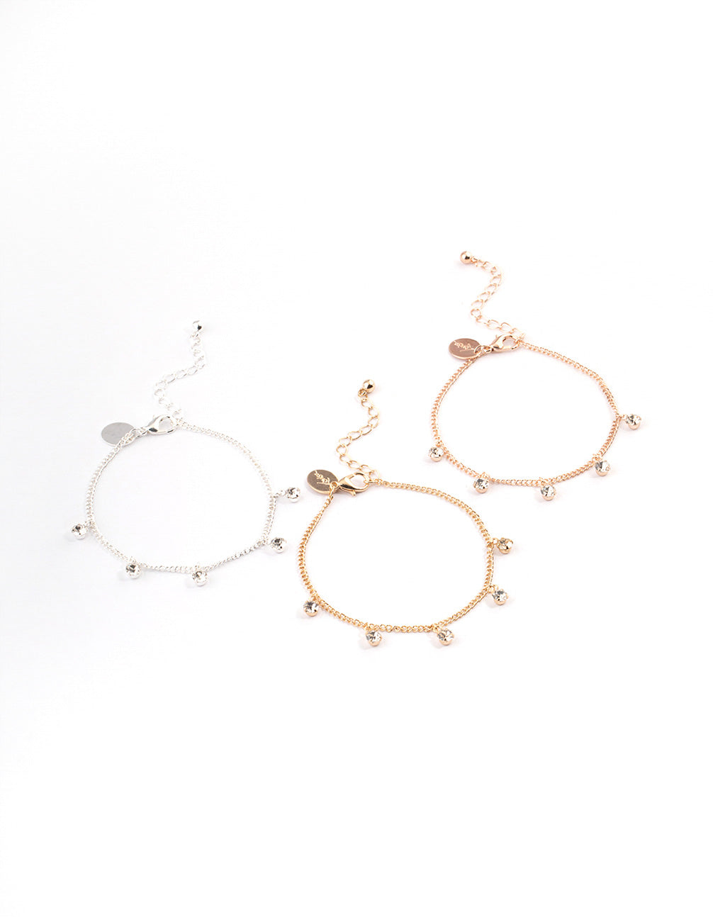 - This gift box ccontains three diamante, heart charm bracelets. Perfect for spoilling your loved ones!