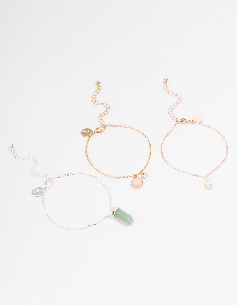 This bracelet pack contains three individual bracelets, all with their own semi-precious and freshwater pearl charms for a personal touch.