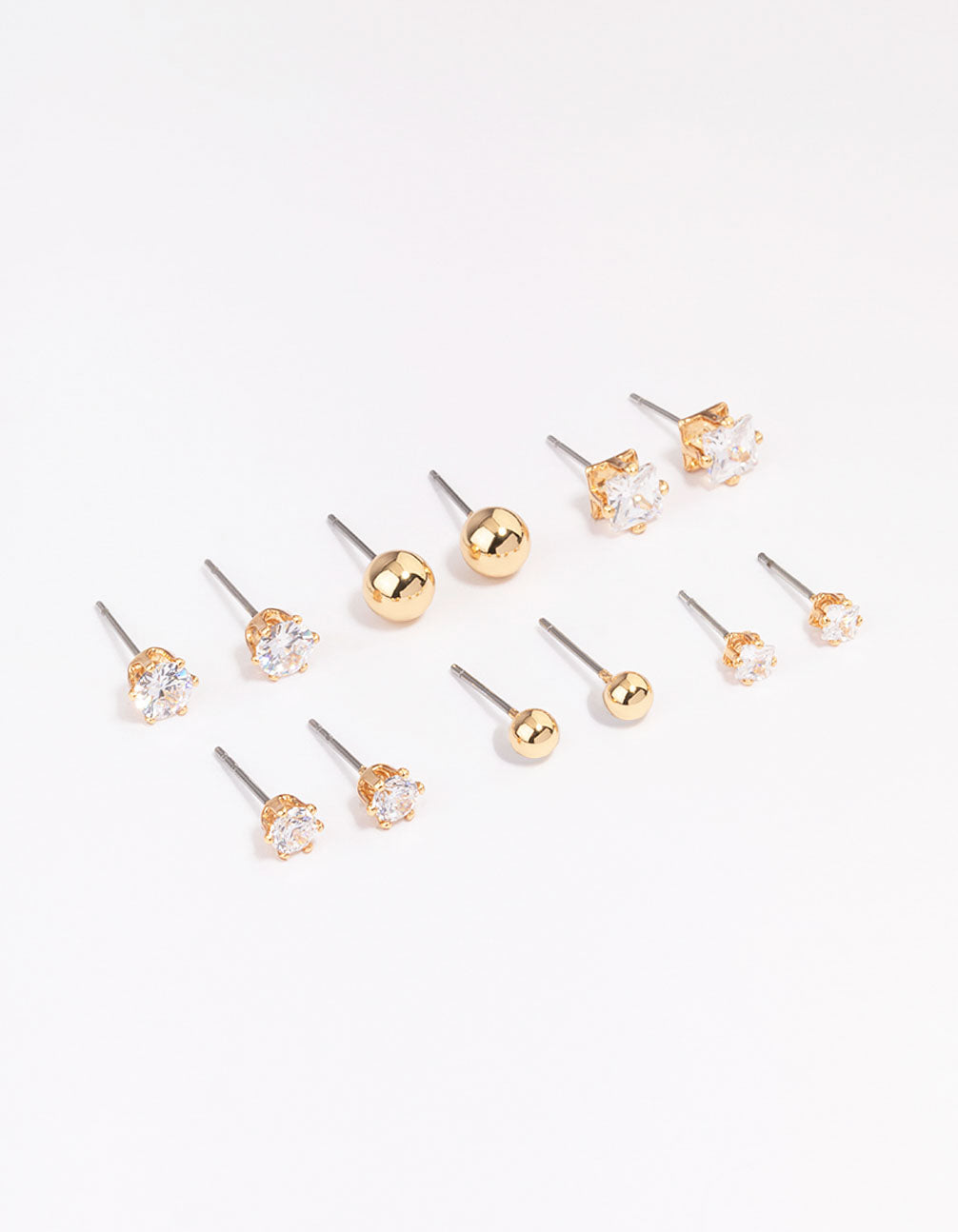 Gold Plated Cubic Zirconia & Ball Stud Earrings 6-Pack Gold Plated Cubic Zirconia & Ball Stud Earrings 6-Pack Gold Plated Cubic Zirconia & Ball Stud Earrings 6-Pack