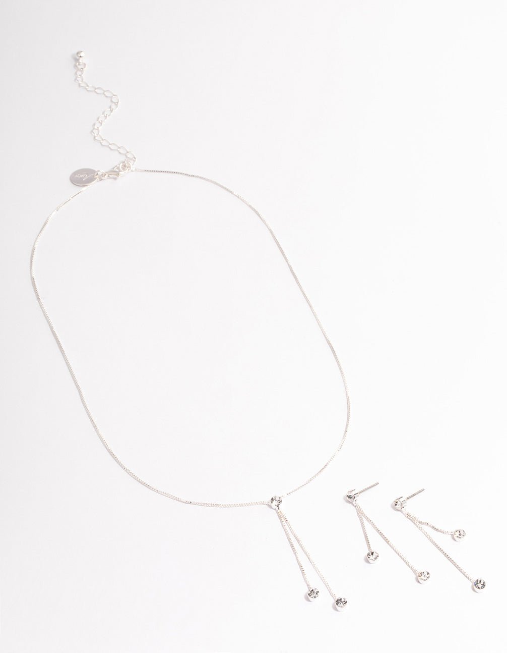 Silver Diamante Y-Shape Necklace & Drop Earrings Jewellery Set