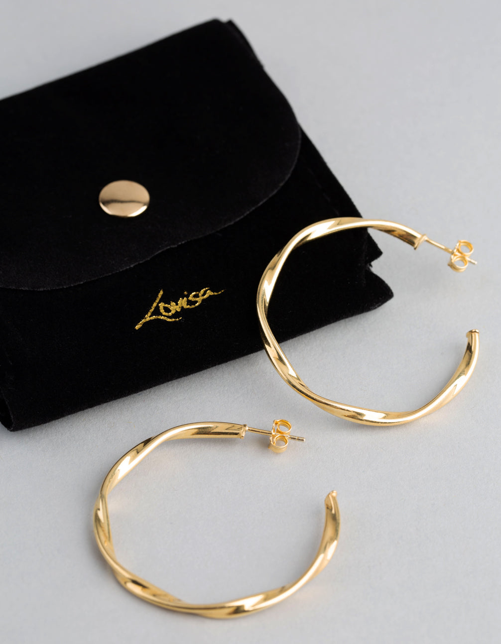 Make a statement that lasts forever with Lovisa Black Label pieces. These lovely twisted open hoop earrings will make you look effortlessly chic. They are made from 925 sterling silver (stamped with signature 925 to indicate authenticity and purity) that has been plated with 1 micron of real gold.