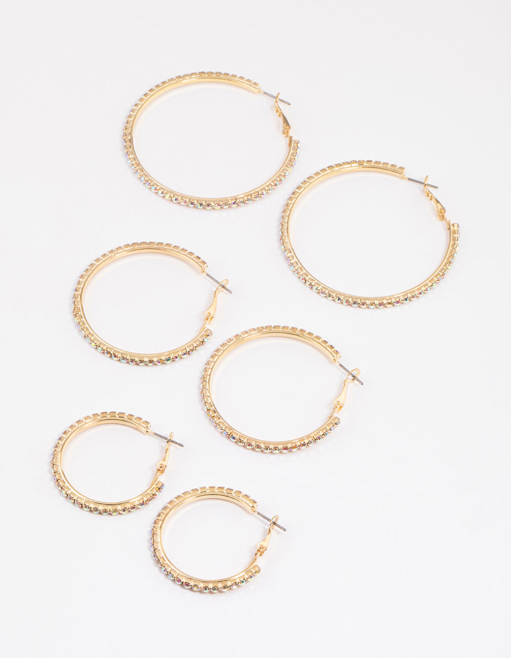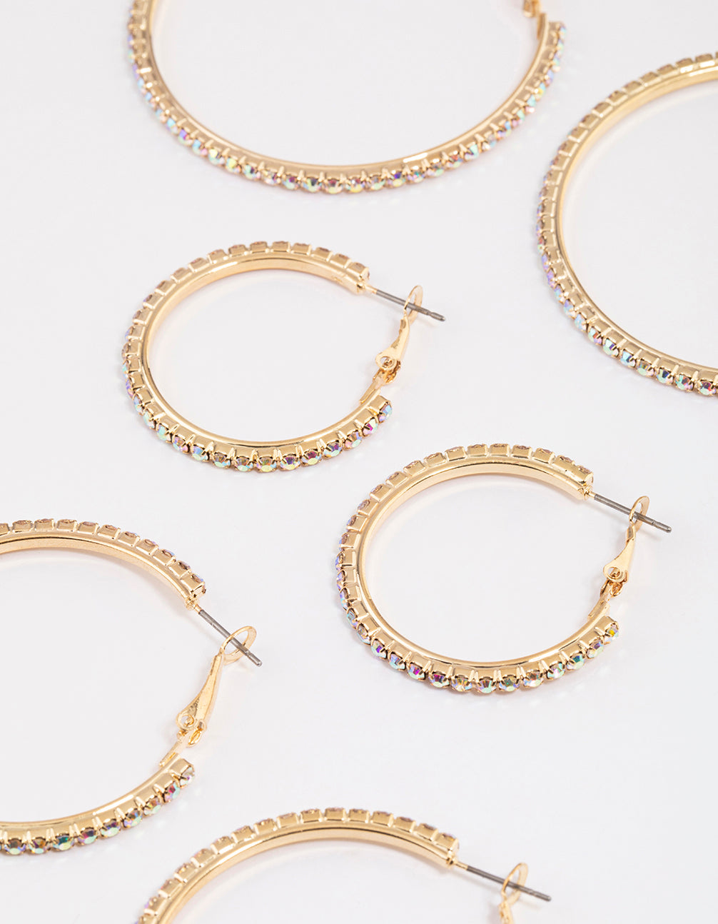 - Style these Gold Mixed Size Diamante Hoop Earrings with a set of simple diamond studs for a glamorous, layered look.