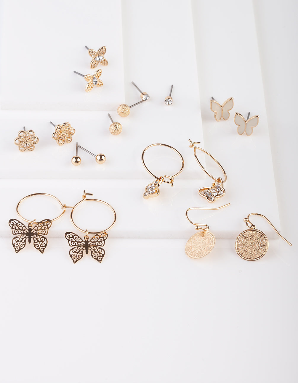 Gold Butterfly Stud & Sleeper Earrings 9PK