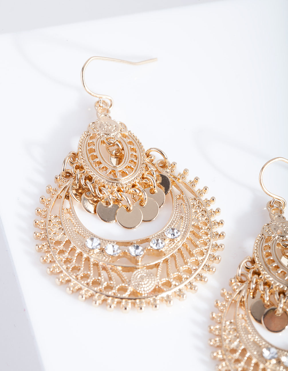This favourite has been recreated in mini! These earrings boast a gold-toned bohemian design with diamante embellishments.