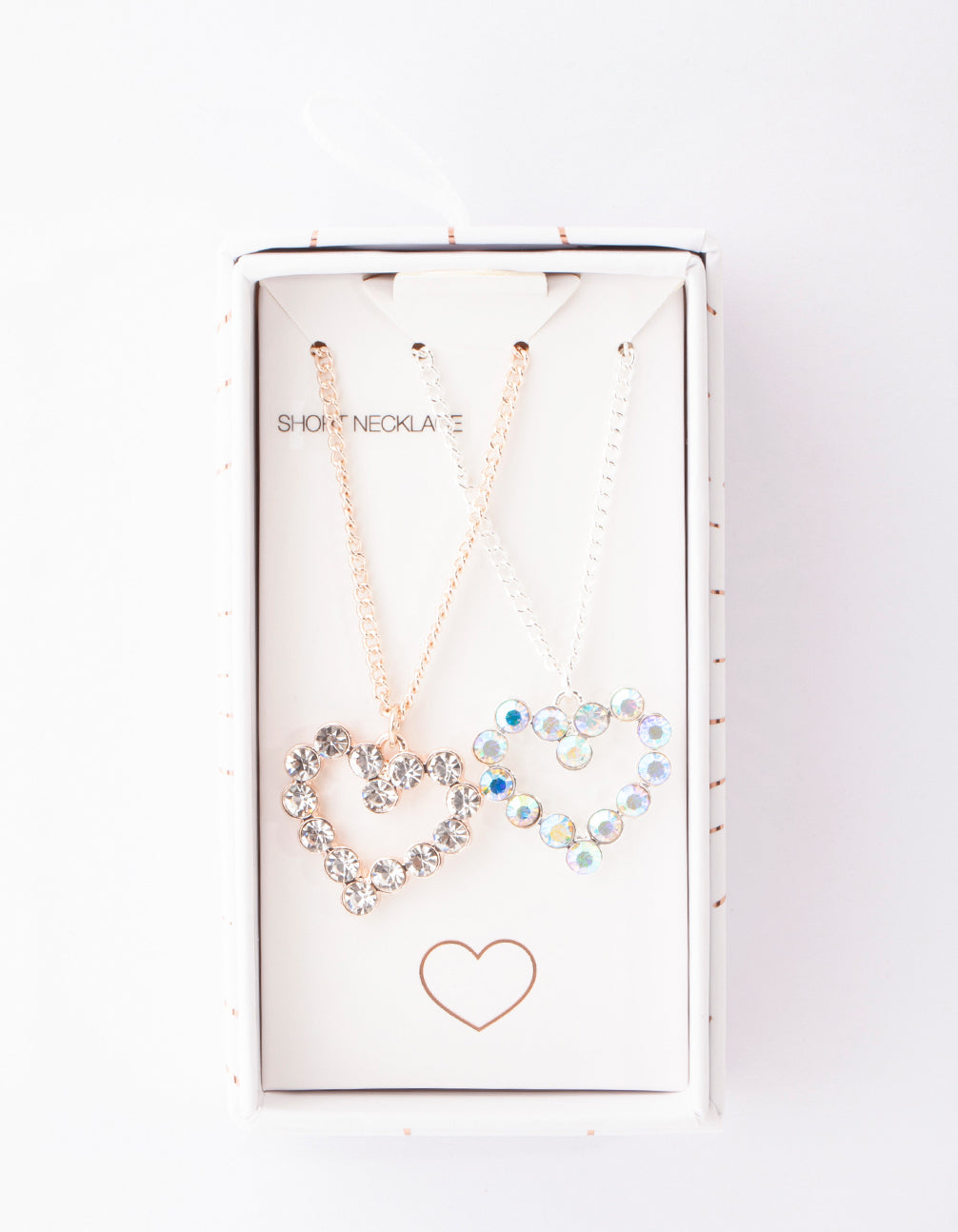 Give the perfect gift to that special someone or treat yourself with this mixed metal diamante embellished heart pendant necklace pack.