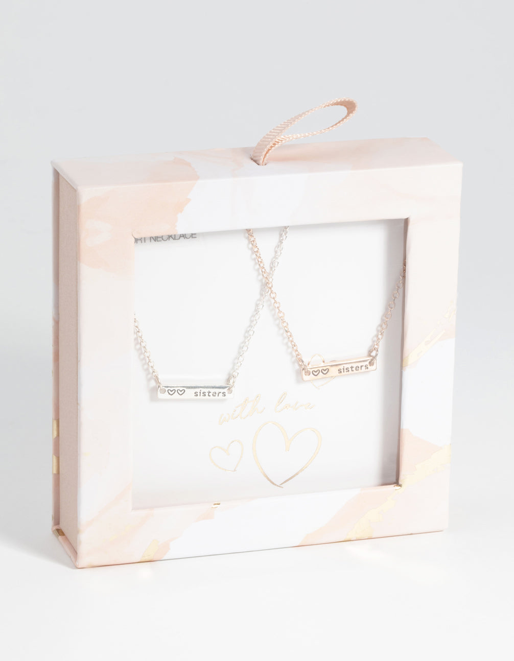 This jewellery comes in a lovely gift box. Use it for safekeeping between wears, or gift it to someone special. This pack is designed for two sisters. The perfect gift for the holiday season!