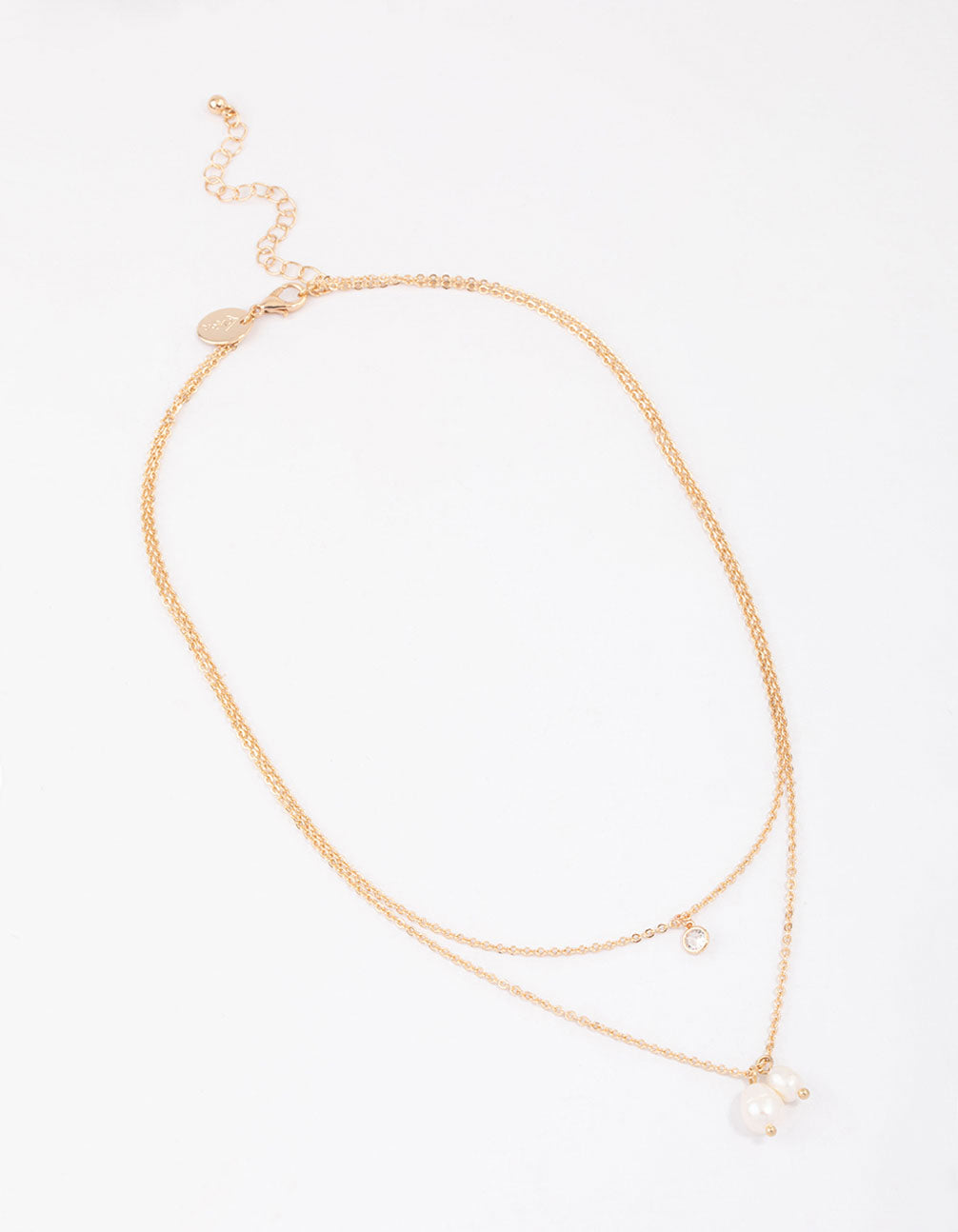 - Style this Gold Double Freshwater Pearl Diamante Necklace with a dainty choker and pop it back in its pouch when you're done styling.
