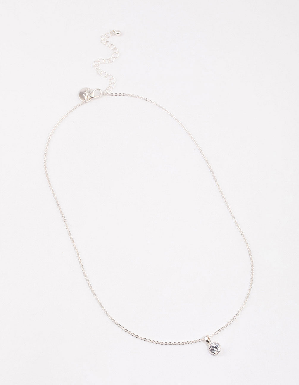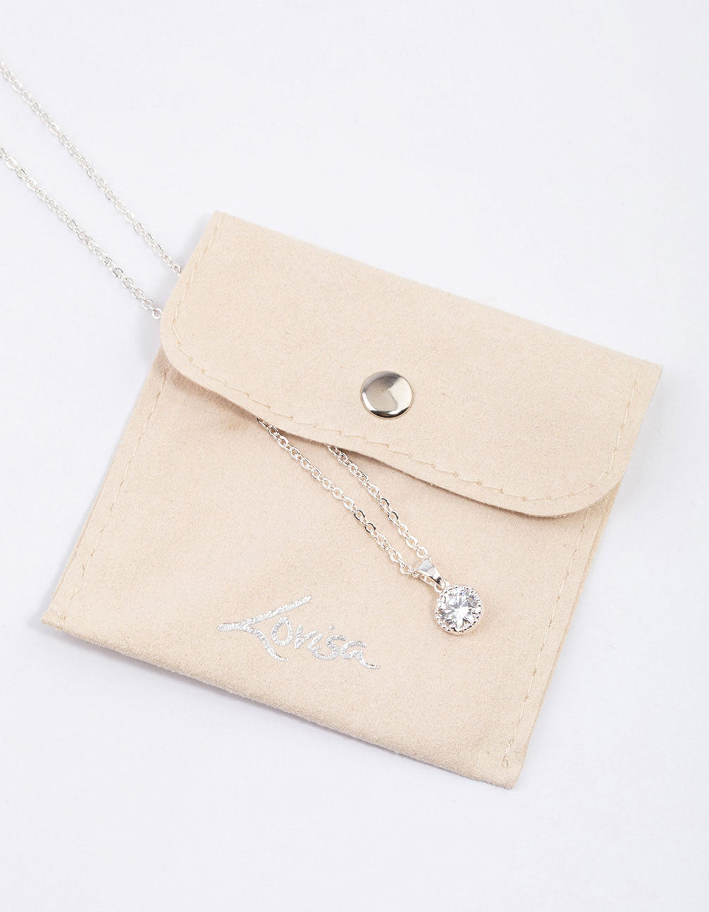 • Style this Silver Encased Diamante Drop Necklace with a dainty choker and pop it back in its pouch when you're done styling.
