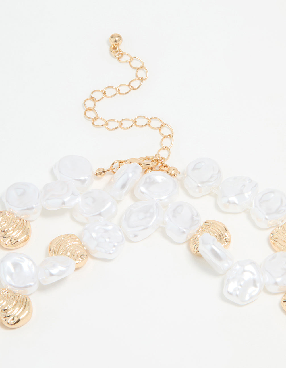 Add a touch of effortless elegance with this Gold Beaded Pearl Molten Layered Necklace. This stunning piece of jewellery combines delicate gold-toned beads, luminous pearls, and a molten-inspired design across two layered rows for a chic, textured look. Perfect for dressing up casual outfits or adding a sophisticated edge to evening wear, this necklace is versatile enough for brunches, beach days, or nights out. Pair it with flowy dresses or crisp blouses for that breezy, under-the-sea-inspired charm. Whether you're after a statement necklace or layering essential, this one's a keeper!