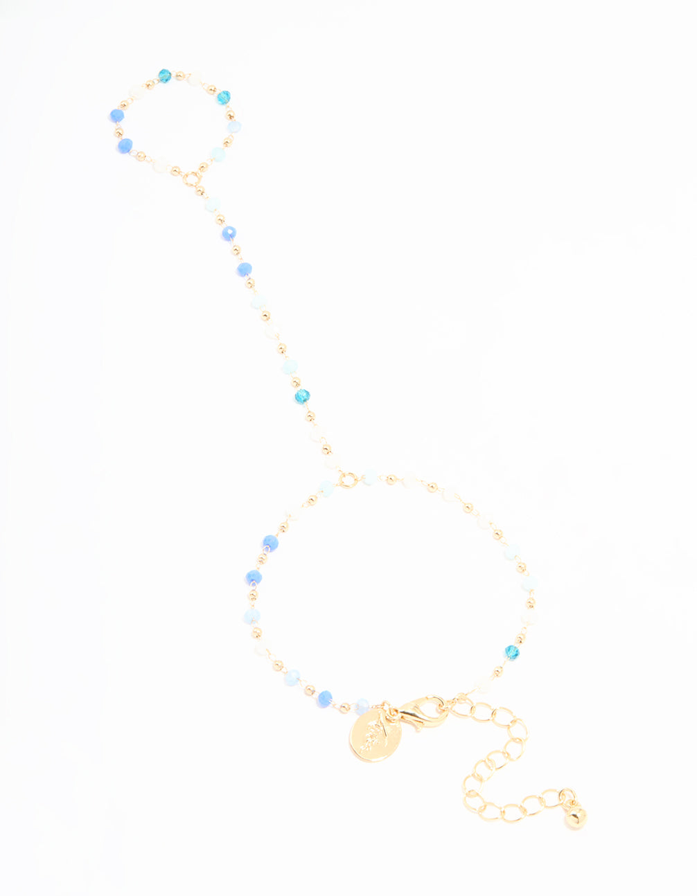 Add a touch of elegance to your look with this Gold Blue Faceted Bead Hand Chain! This stunning hand chain combines delicate gold tones with shimmering blue faceted beads for a unique and stylish accessory. Perfect for festivals, parties, or just elevating your everyday vibe, this hand chain wraps gracefully around your wrist and finger for a chic, boho-inspired look. Pair it with flowy dresses or casual denim for an effortlessly cool outfit. Whether you're searching for hand jewellery, body accessories, or a standout chain design, this beautiful hand chain is your go-to for adding a little sparkle and personality to your style.