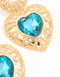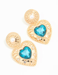 Gold Blue Stone Heart Drop Earrings