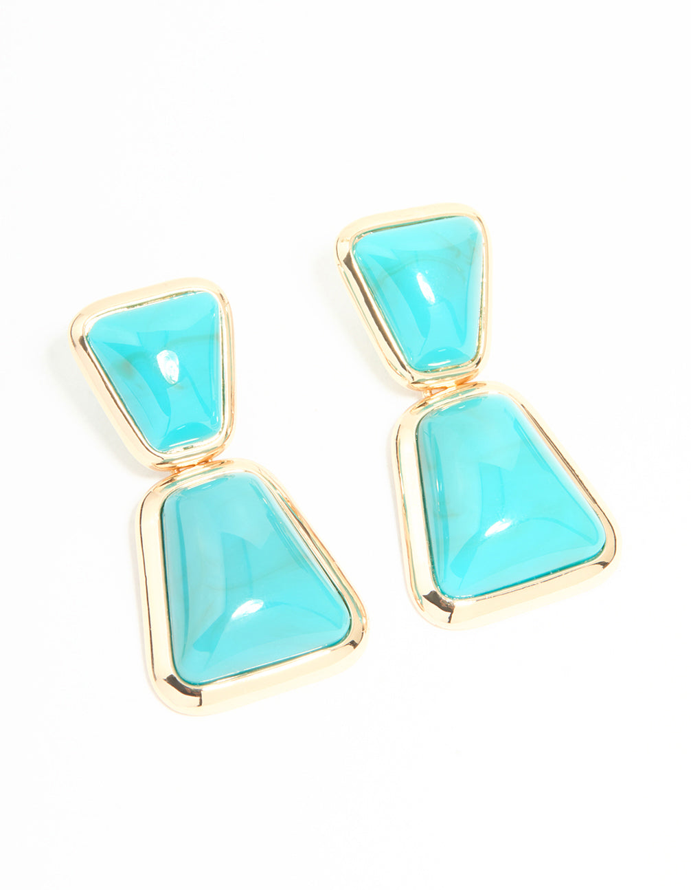 Gold Blue Stone Statement Drop Earrings