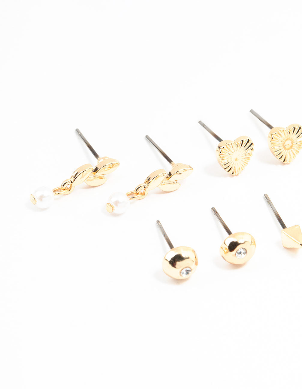 Gold Bow & Pearl Stud Earrings 8-Pack