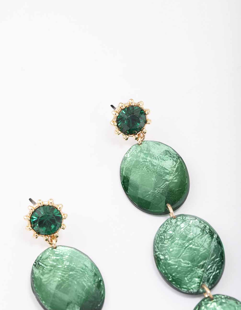 Add impact to your stack with these emerald-coloured, diamante drop earrings.