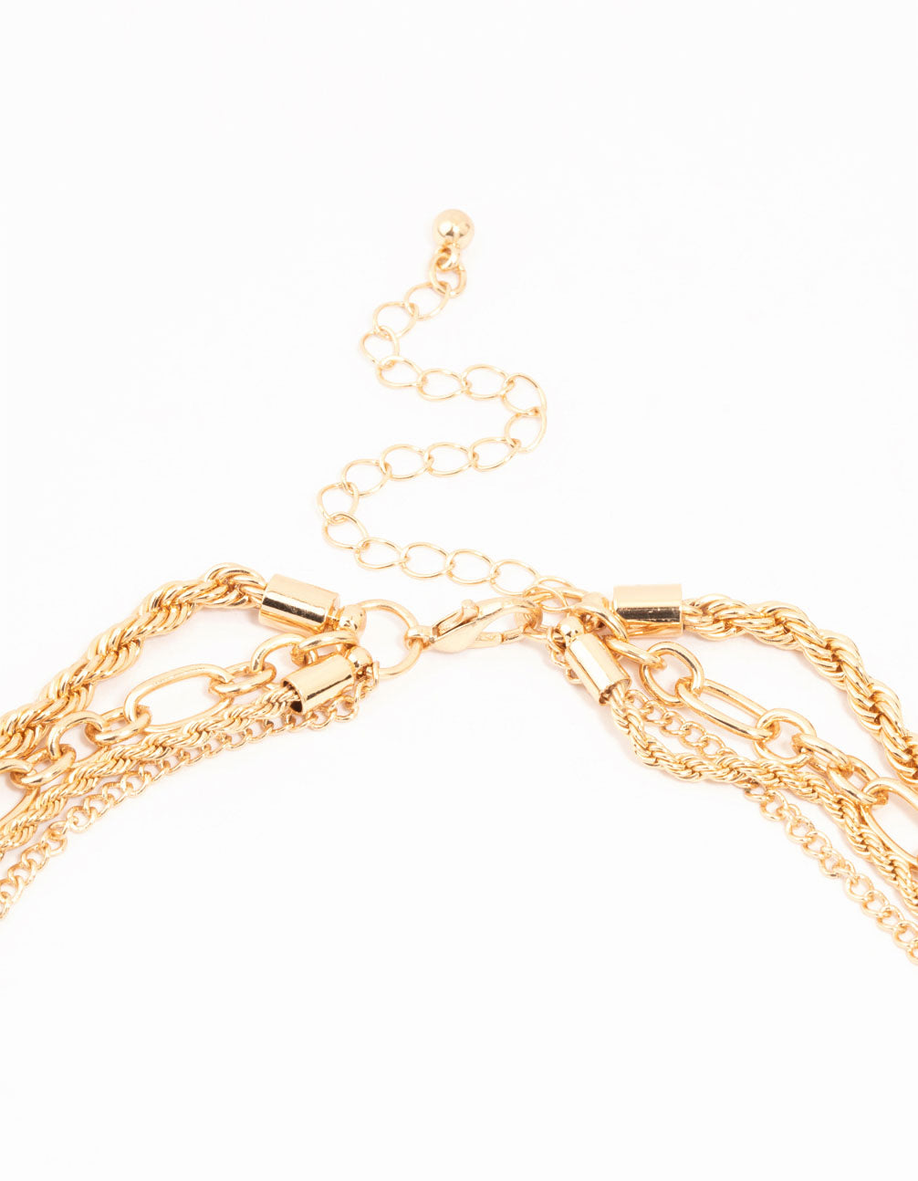 Embrace the trendy layered look with this necklace. With four stylish layers—gold crosses, a red diamante cross, a red diamante and gold heart pendant, and a twisted chain with a silver diamante heart—it's a must-have for instant flair.
