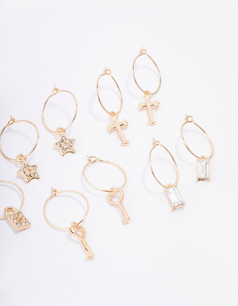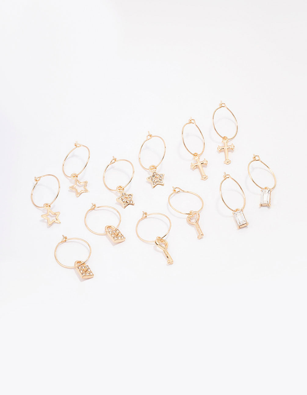 Gold Crystal Star Wire Hoop Earring 6-Pack