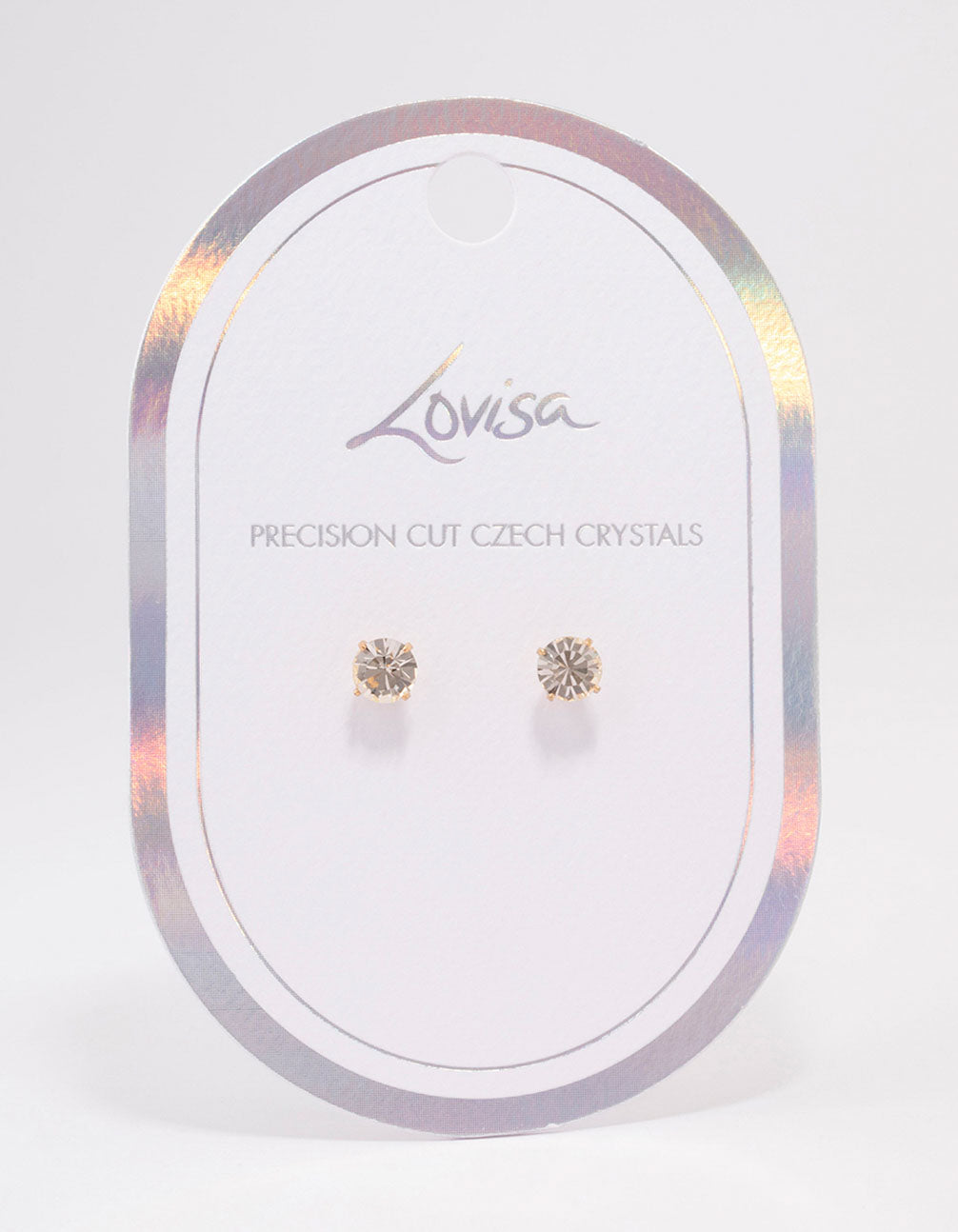 This set of simple stud earrings feature round, czech crystals for a touch of sparkle.