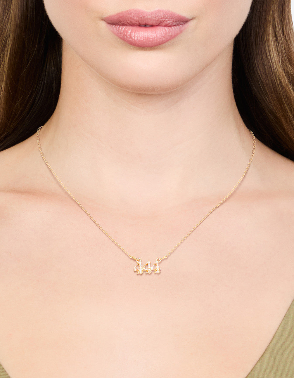 Gold Plated Cubic Zirconia 444 Angel Number Necklace