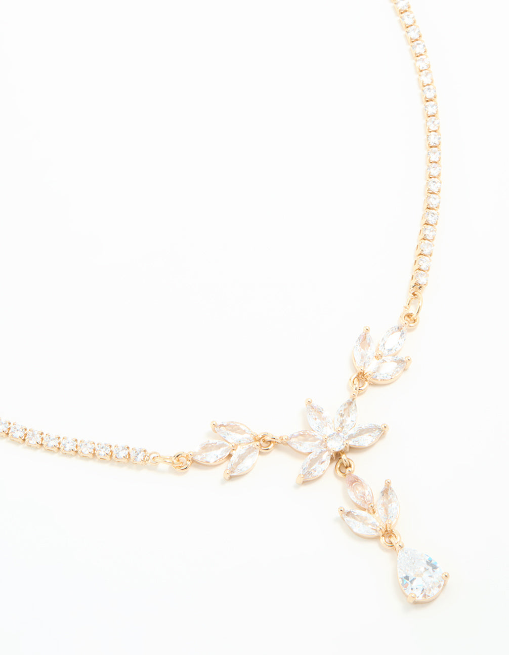 Gold Cubic Zirconia Cascading Flower Necklace