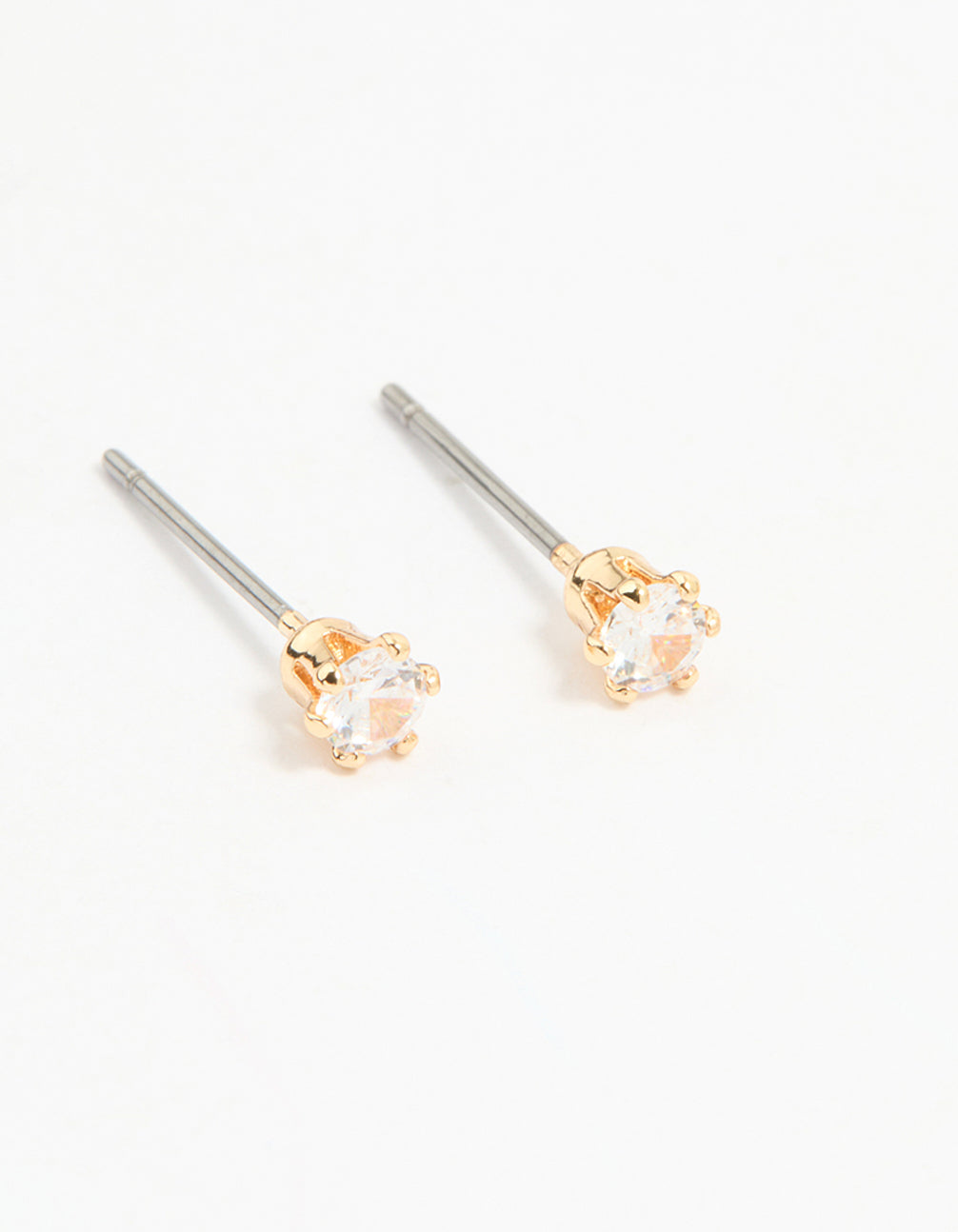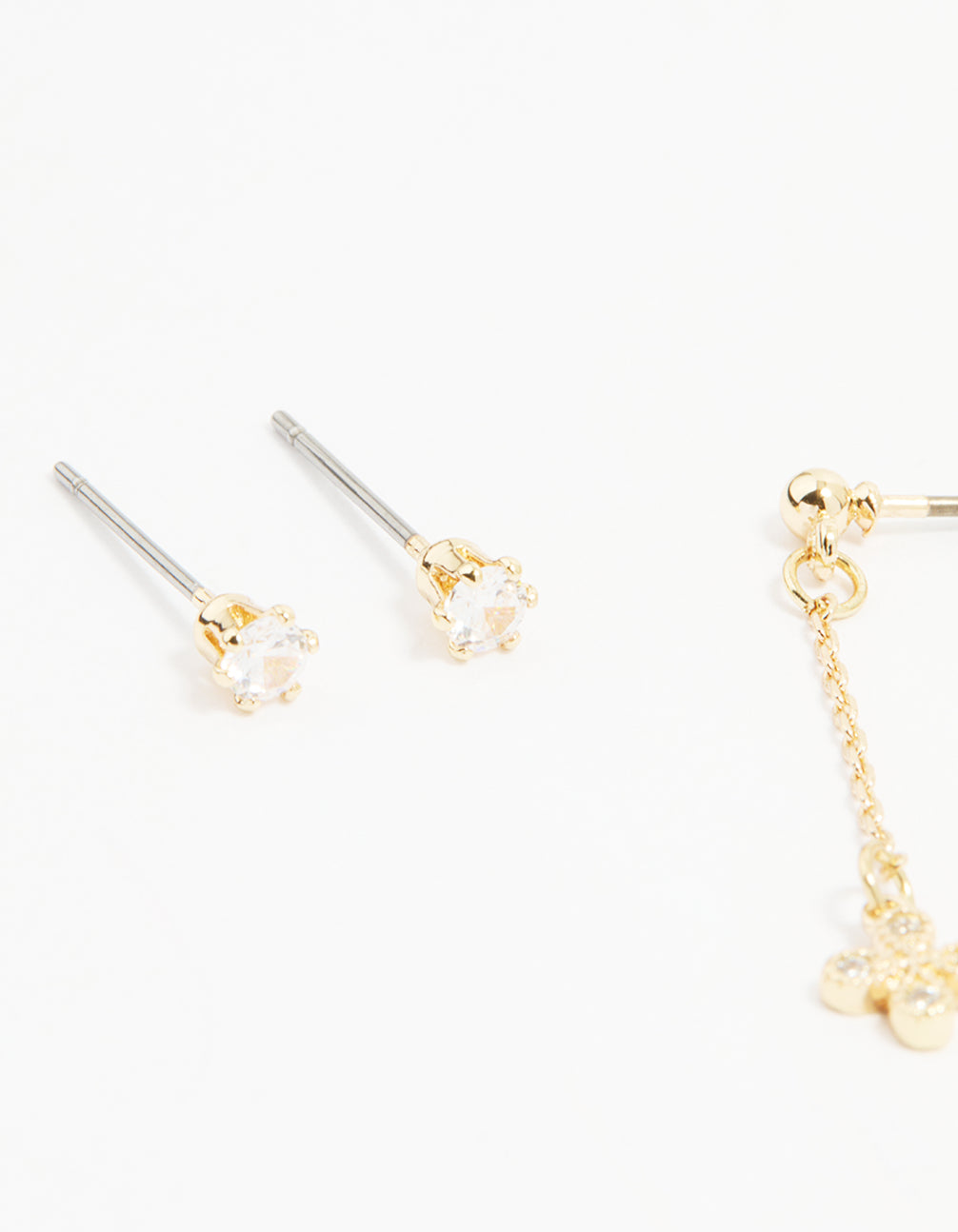 Gold Cubic Zirconia Chain & Stud Earrings 3-Pack