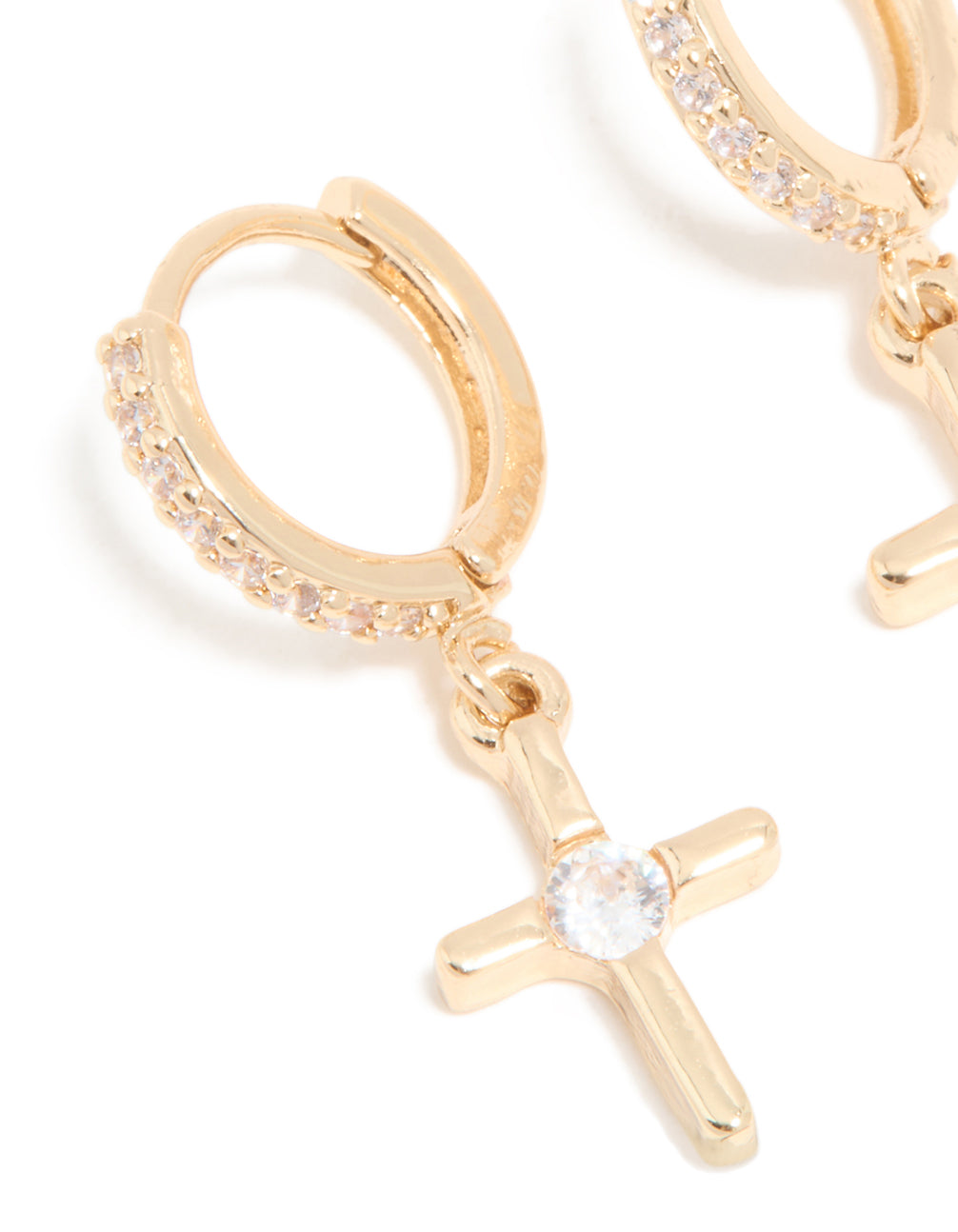 Gold Cubic Zirconia Cross Drop Huggie Earrings Gold Cubic Zirconia Cross Drop Huggie Earrings Gold Cubic Zirconia Cross Drop Huggie Earrings