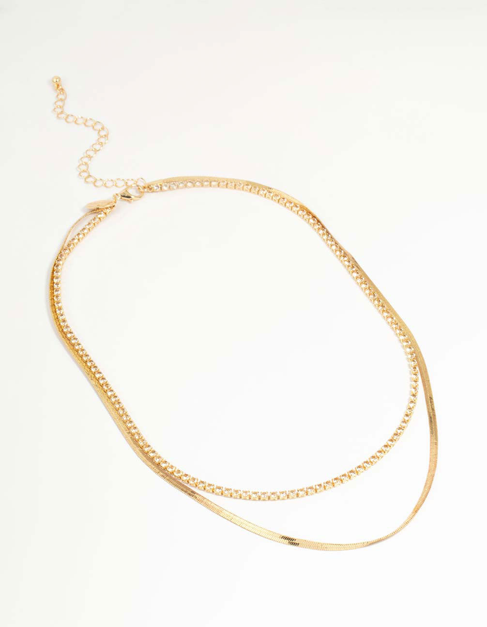 Gold Cubic Zirconia Diamante & Chain Layered Necklace