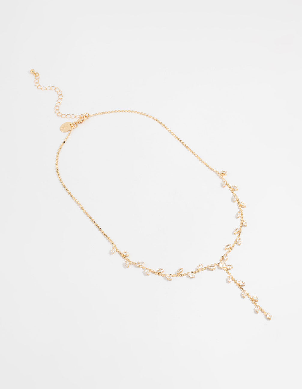 Add some organic glam with this gorgeous gold-toned necklace! Featuring cubic zirconia leaf details and a Y-necklace design, it's perfect for an elegant touch.