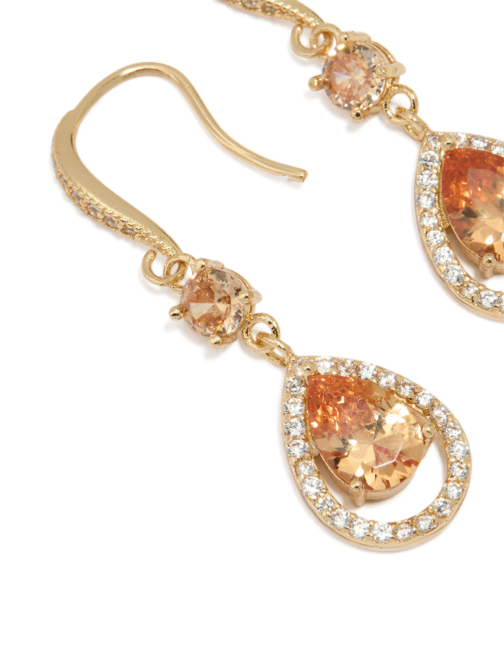 Add a touch of sparkle to your look with these Gold Cubic Zirconia Pear Drop Earrings. Perfect for any jewellery lover, these elegant earrings feature pear-shaped cubic zirconia crystals. The gold-toned finish adds a luxe feel, making them ideal for dressing up a casual outfit or complementing your favourite party dress. Whether you're heading to a wedding, a dinner date, or simply want to elevate your everyday style, these drop earrings are versatile enough to match any occasion. Pair them with a delicate gold necklace or a bold bracelet for a polished finish.
