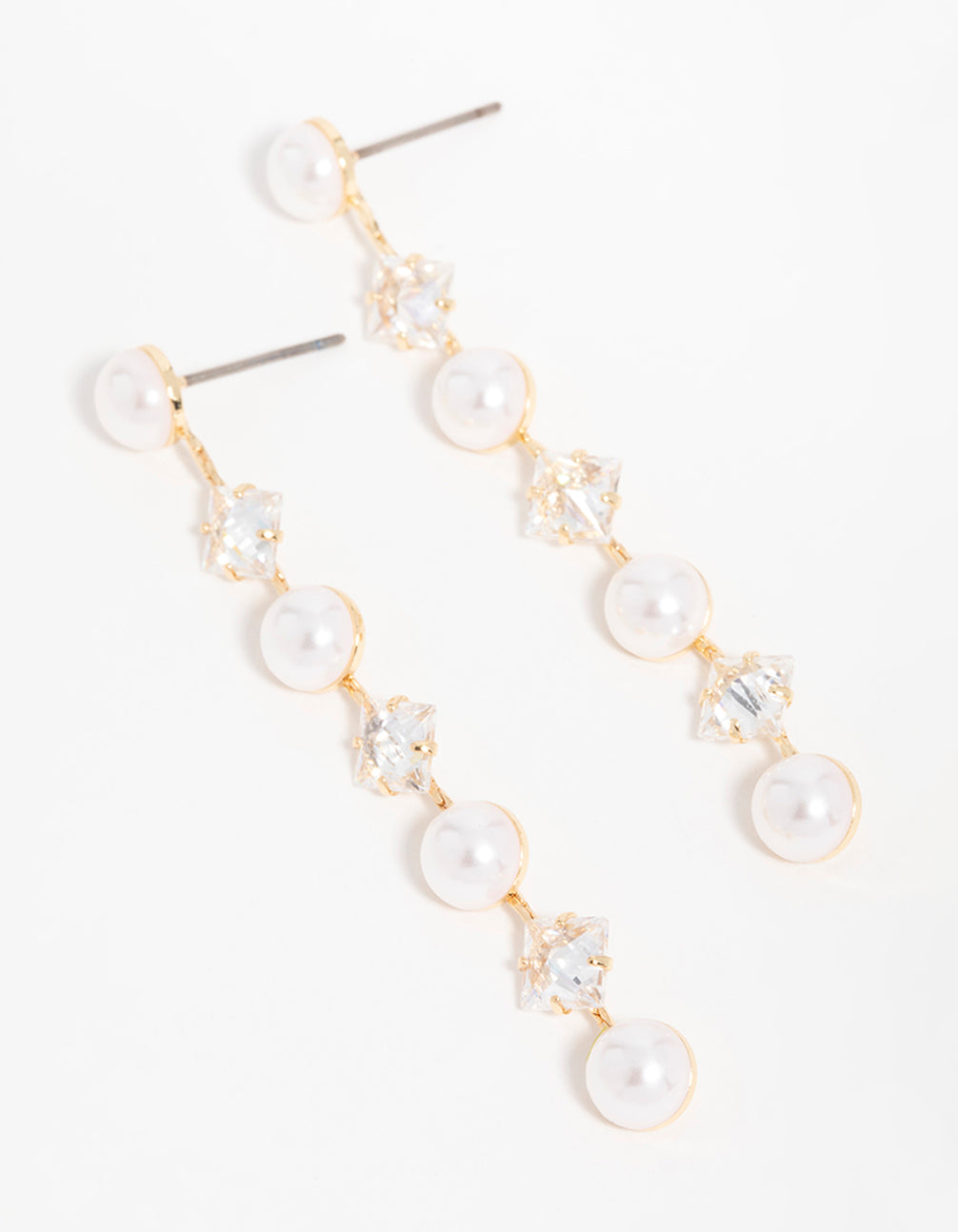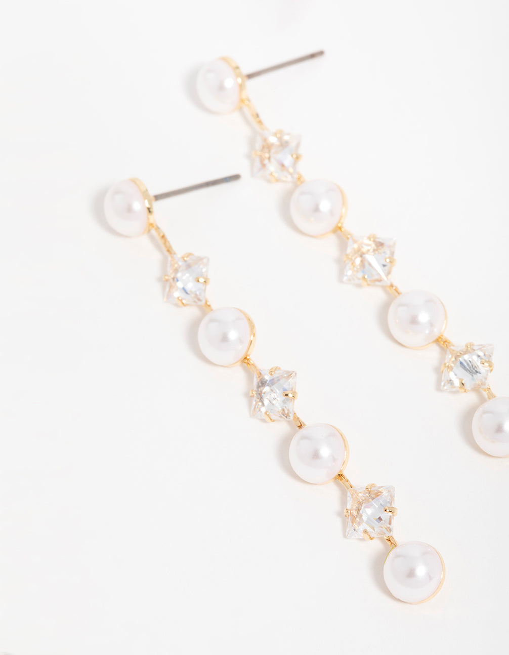 Gold Cubic Zirconia Pearl Alternating Drop Earrings