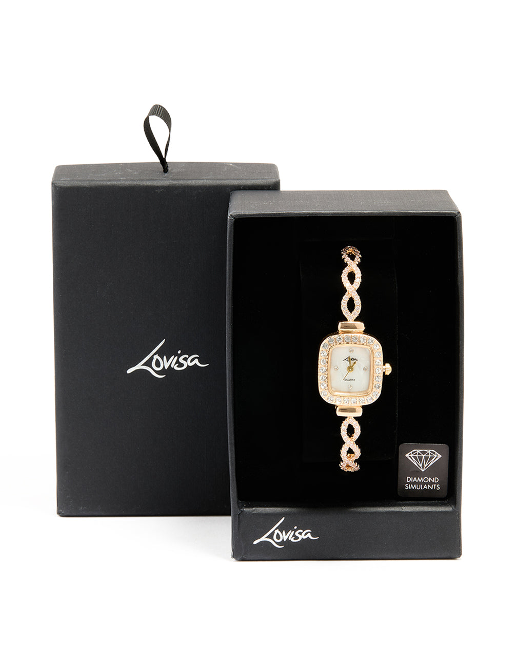 Gold Cubic Zirconia Rectangular Face Toggle Watch