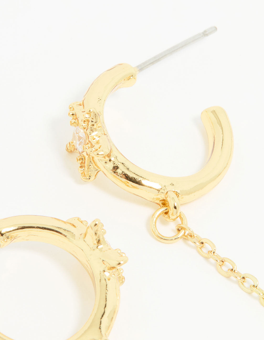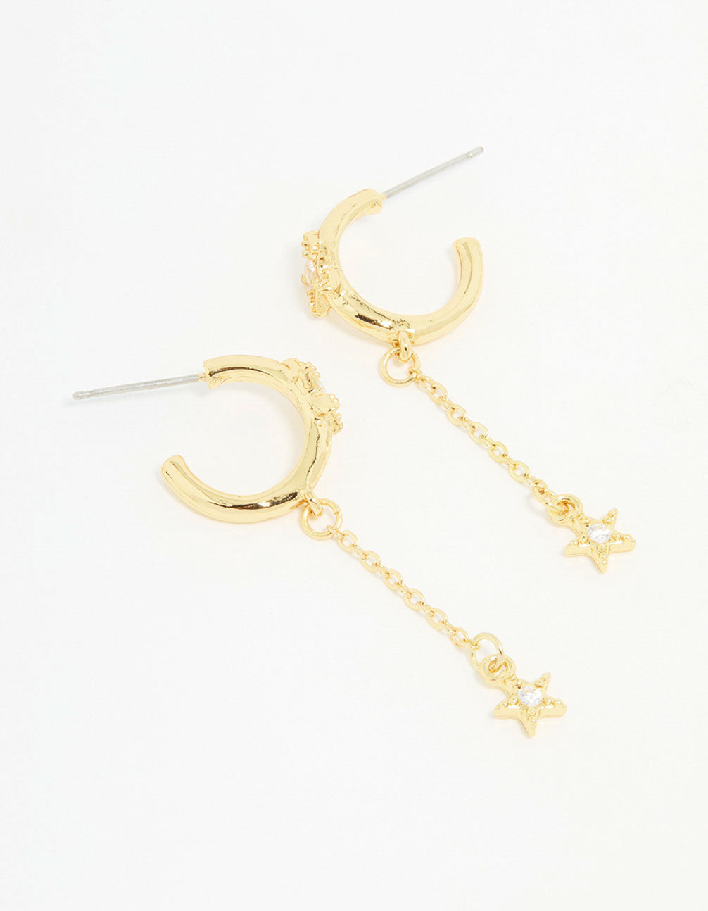Gold Plated Cubic Zirconia Star Chain Drop Earrings