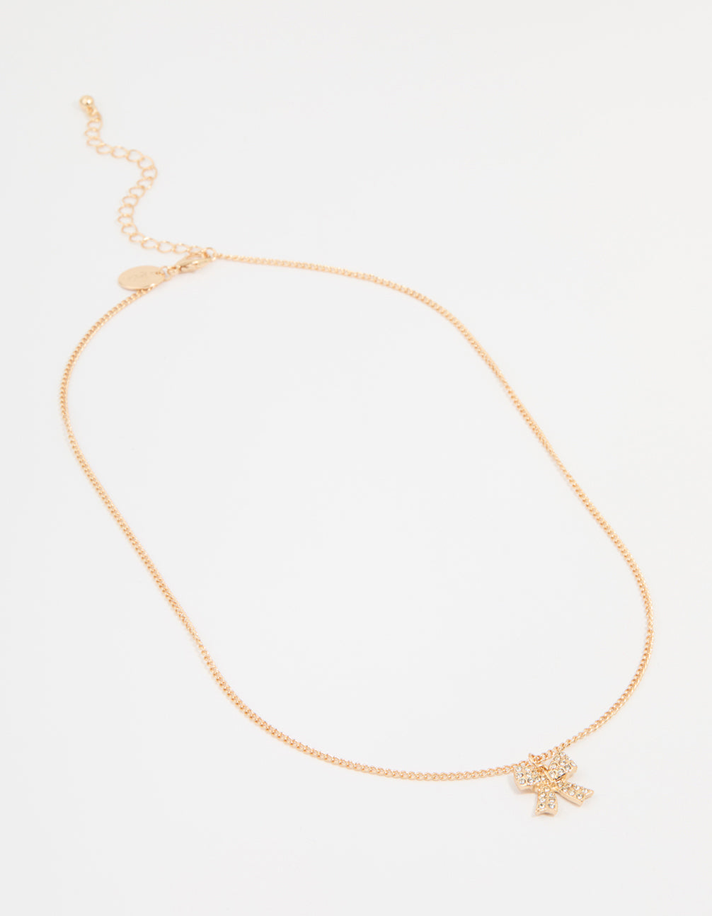 Add a touch of sparkle to your look with this Gold Diamante Bow Necklace! This necklace features a sweet bow charm adorned with dazzling diamantes, perfectly set on a delicate gold-tone chain. Whether you're dressing up for a party, heading out for brunch, or adding a bit of glam to your everyday style, this necklace effortlessly shines. Its timeless yet playful design pairs beautifully with dresses, tops, or even a classic tee. Perfect for layering or wearing solo, it's a versatile accessory that works for any occasion. Looking for a thoughtful present? This necklace is a charming gift idea for someone special—or a treat for yourself!