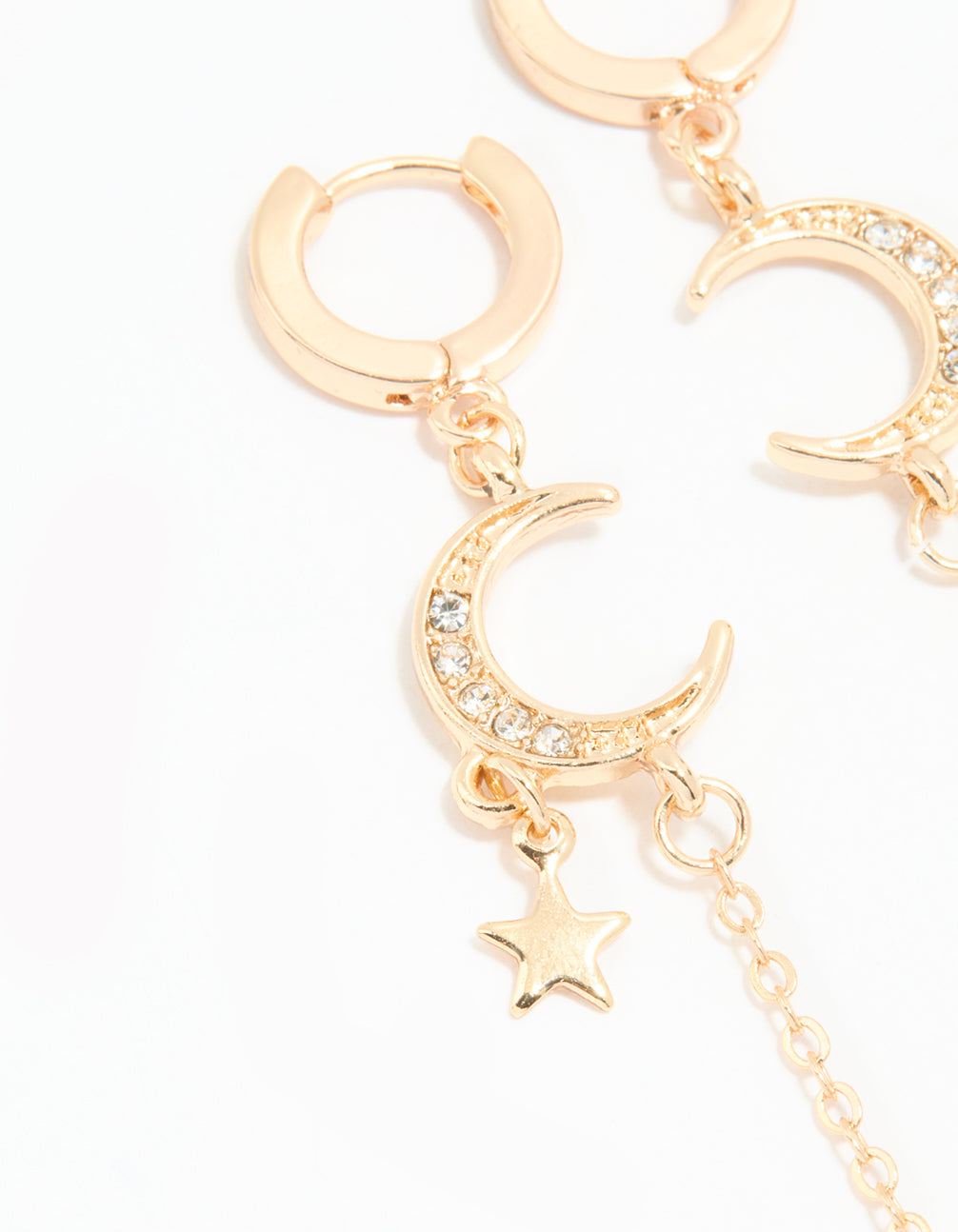 Gold Diamante Celestial Chain Drop Huggie Earrings
