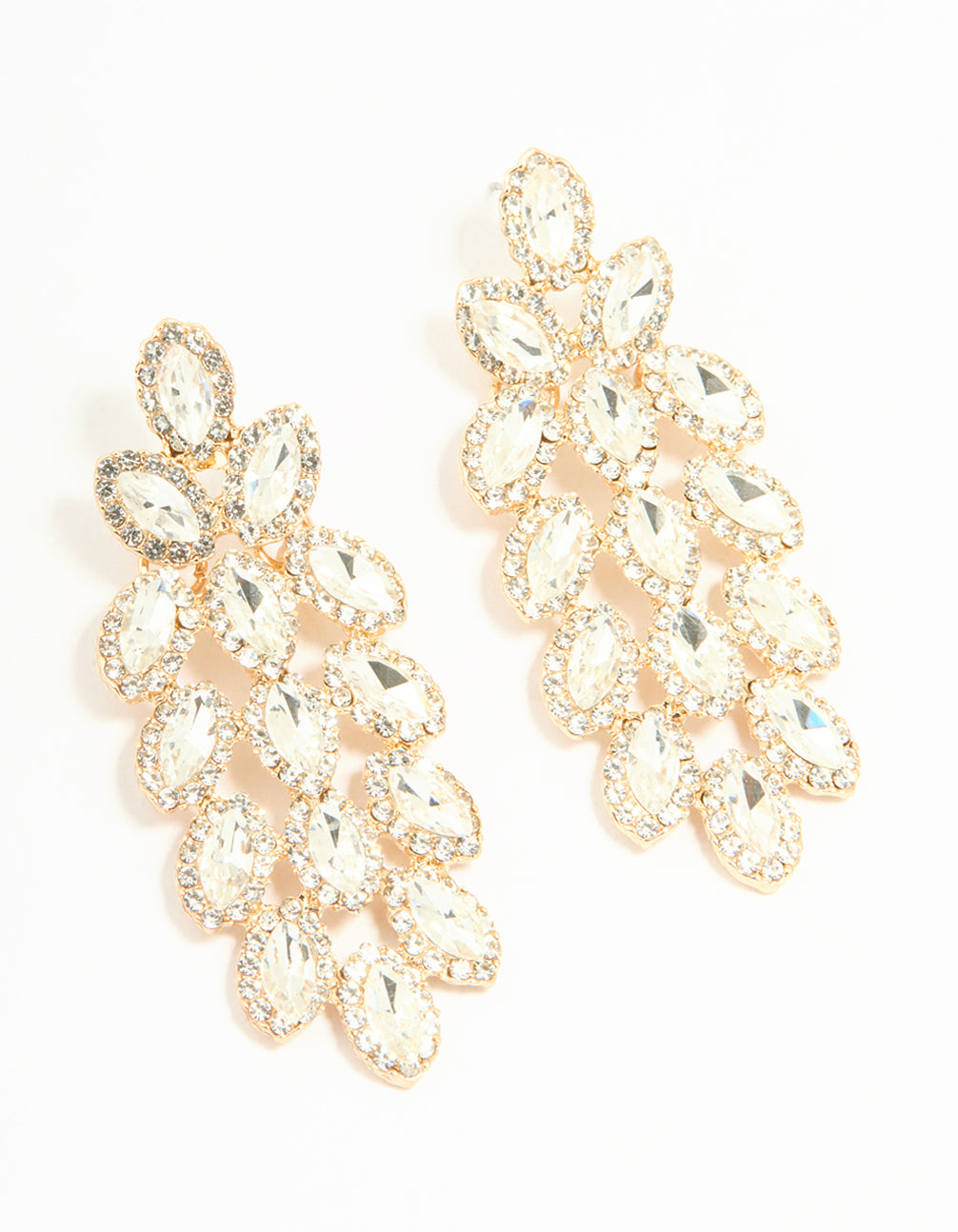 Turn up the glamour with these Gold Diamante Marquise Statement Drop Earrings, a dazzling choice for any occasion. These stunning drop earrings feature an elegant marquise-inspired design, crafted from gold-plated metal and accented with sparkling diamantes for that extra shine. Perfect for weddings, parties, or a fancy night out, they'll elevate everything from a sleek evening dress to a chic jumpsuit. Searching for statement earrings or jewellery that adds instant sophistication? These beauties are your go-to for effortless elegance.