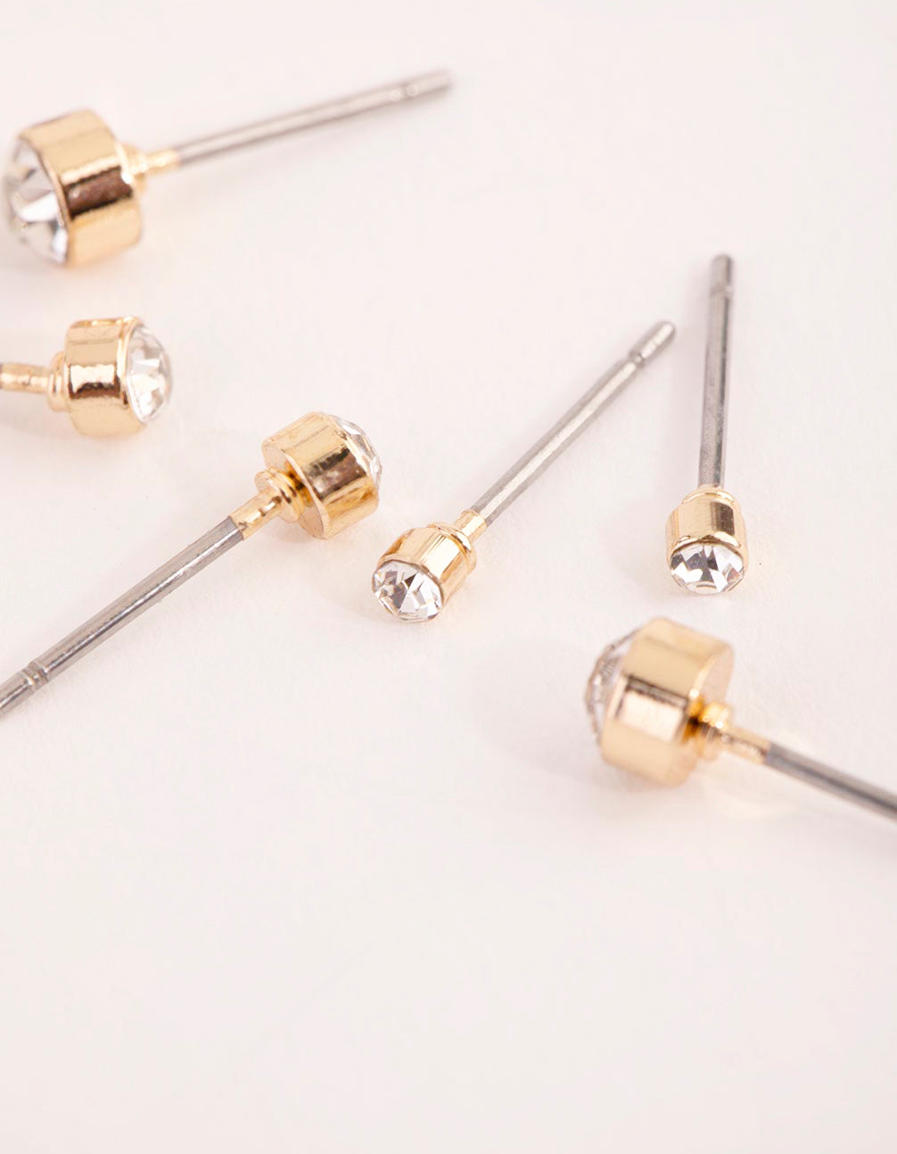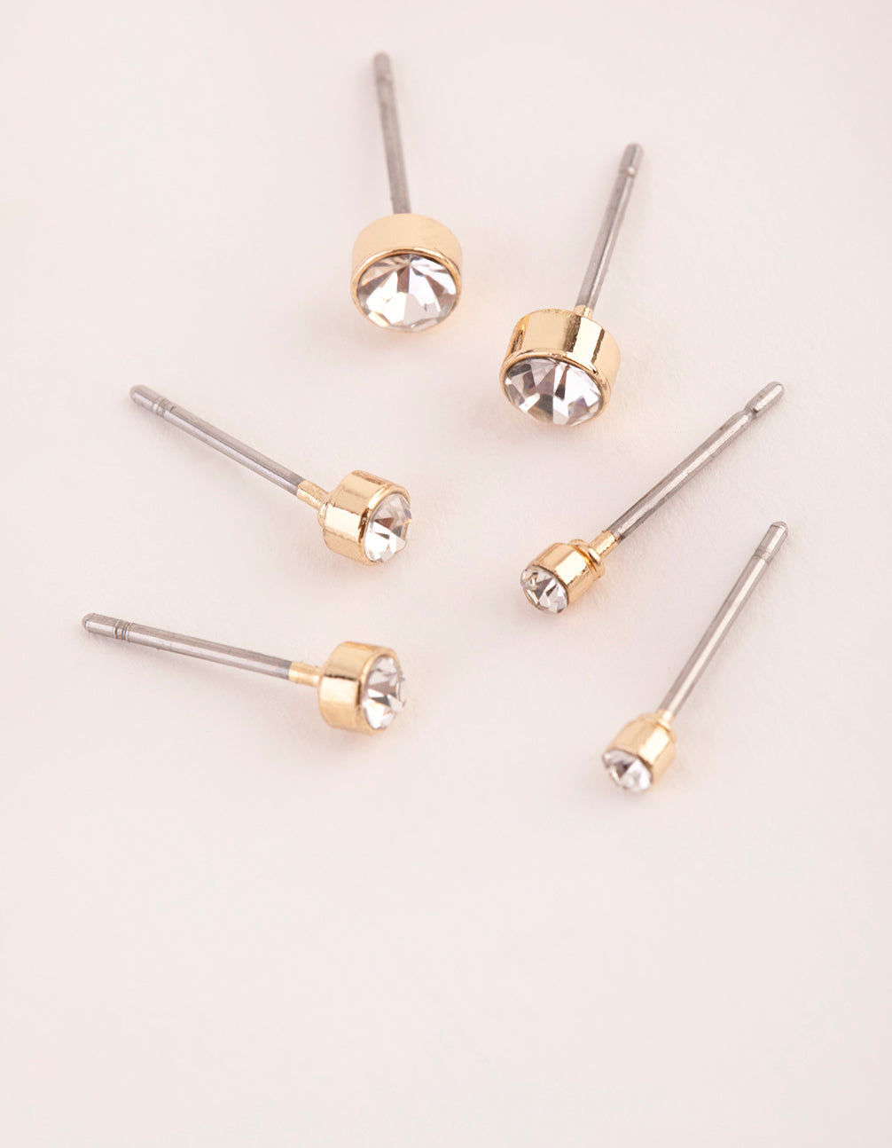 Mix them, match them, stack them! This set is perfect for customising your ear stack! It features a series of gold-toned micro studs with diamante details. Get stacking!